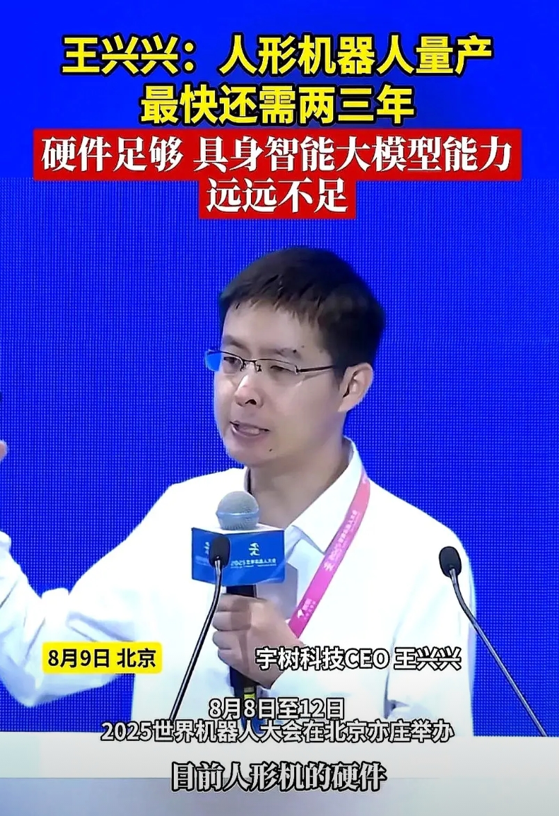 王兴兴在2025世界机器人大会上一句话戳破泡沫:硬件已经能批量下线,脑子却还在诺基亚时代。