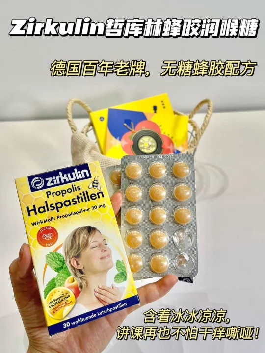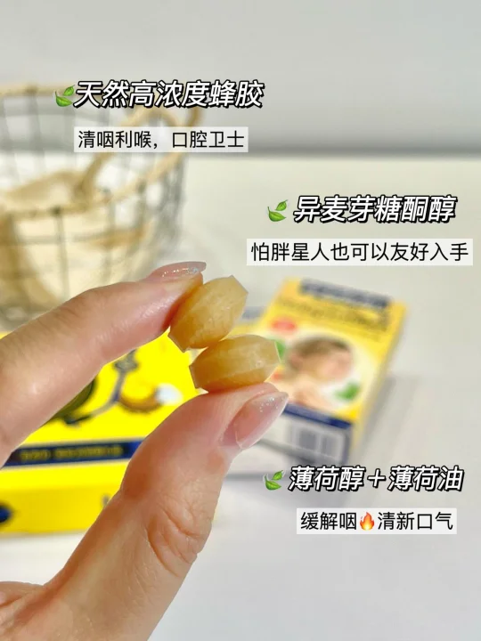 这润喉糖是德国百年老牌,无糖蜂胶配方,含着冰冰凉凉,