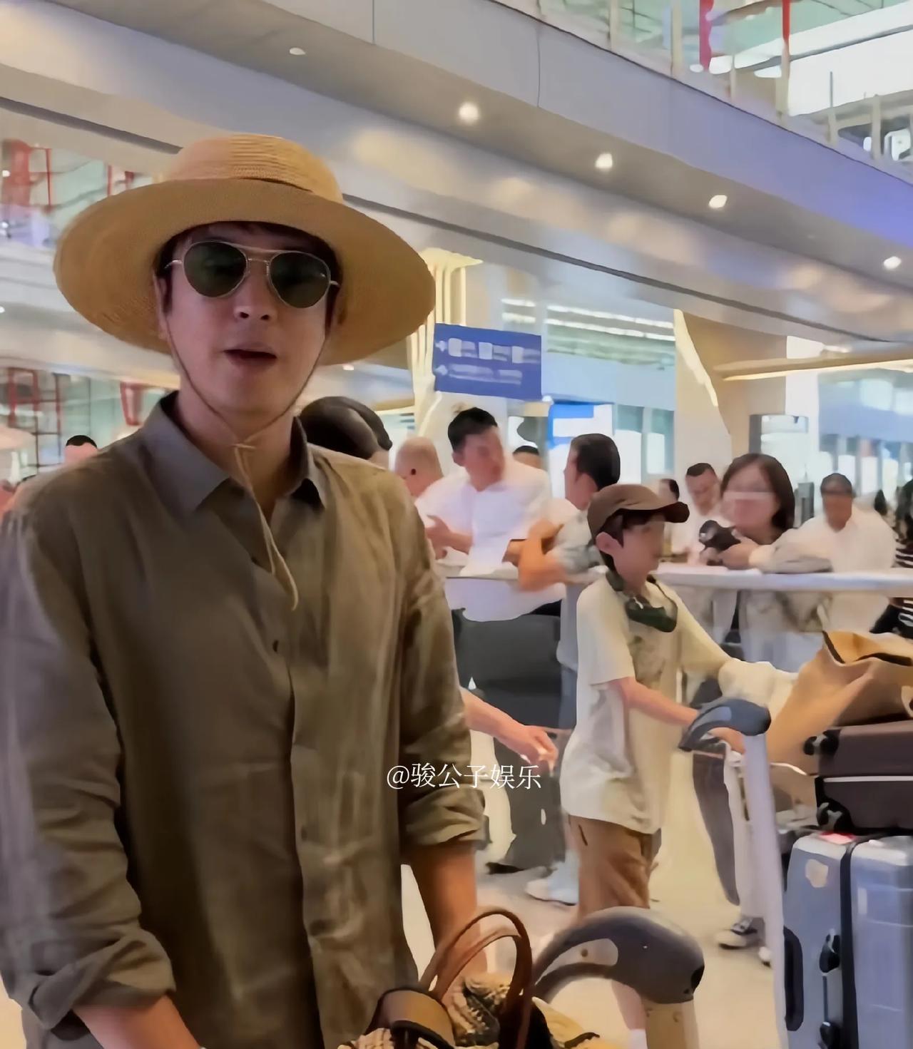 杜江霍思燕一家四口近日现身机场,父子俩负责推行李,母女俩则轻松随行。杜江与12岁的儿子嗯哼(杜宇麒)合力推行李车,车上堆满5个行李箱,嗯哼身高已接近成人,主动分担重任。母女俩仅背小包,尽显"父子出力、母女享福"的温馨画面。女儿身穿黑色衬衫配绿色细格子裙,戴着帽子,显得洋气十足。霍思燕则以红色无袖衫搭配紧身牛仔裤亮相,身材明显消瘦,与早前的"幸福肥"形成鲜明对比,引发网友猜测她可能为回归荧幕而专注身材管理。