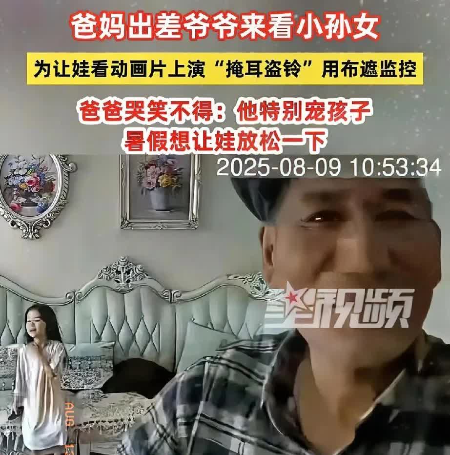 笑不活了 爷爷上演现实版“掩耳盗铃” 新疆克拉玛依,一名男子与妻子临时接到出差通知,便托儿女的爷爷在家照看年仅6岁的女儿,叮嘱他:不能看电视,盯着孩子写作业。 某天,男子休息空隙,便想着打开家里的监控看一眼女儿。没想到一看,竟发现女儿坐在沙发上,正盯着画面一动不动地看着,于是,男子通过监控喊话,没想到女儿却吓得不知所措,只是傻傻地坐在沙发上,一动不动地盯着画面。 旁边爷爷一听,立马反应过来——儿子这是通过监控“查岗”呢!老爷子也不慌,赶紧找了块布,“啪”一下把监控镜头遮得严严实实。生怕儿子看到他俩在看动画片的样子。 没想到,之后画面里只剩下了动画片的声音,还有小女孩咯咯咯的笑声。那男子顿时哭笑不得,不知道该说是爷爷俩有趣,还是自家女儿可爱。 这隔辈亲真是没谁了