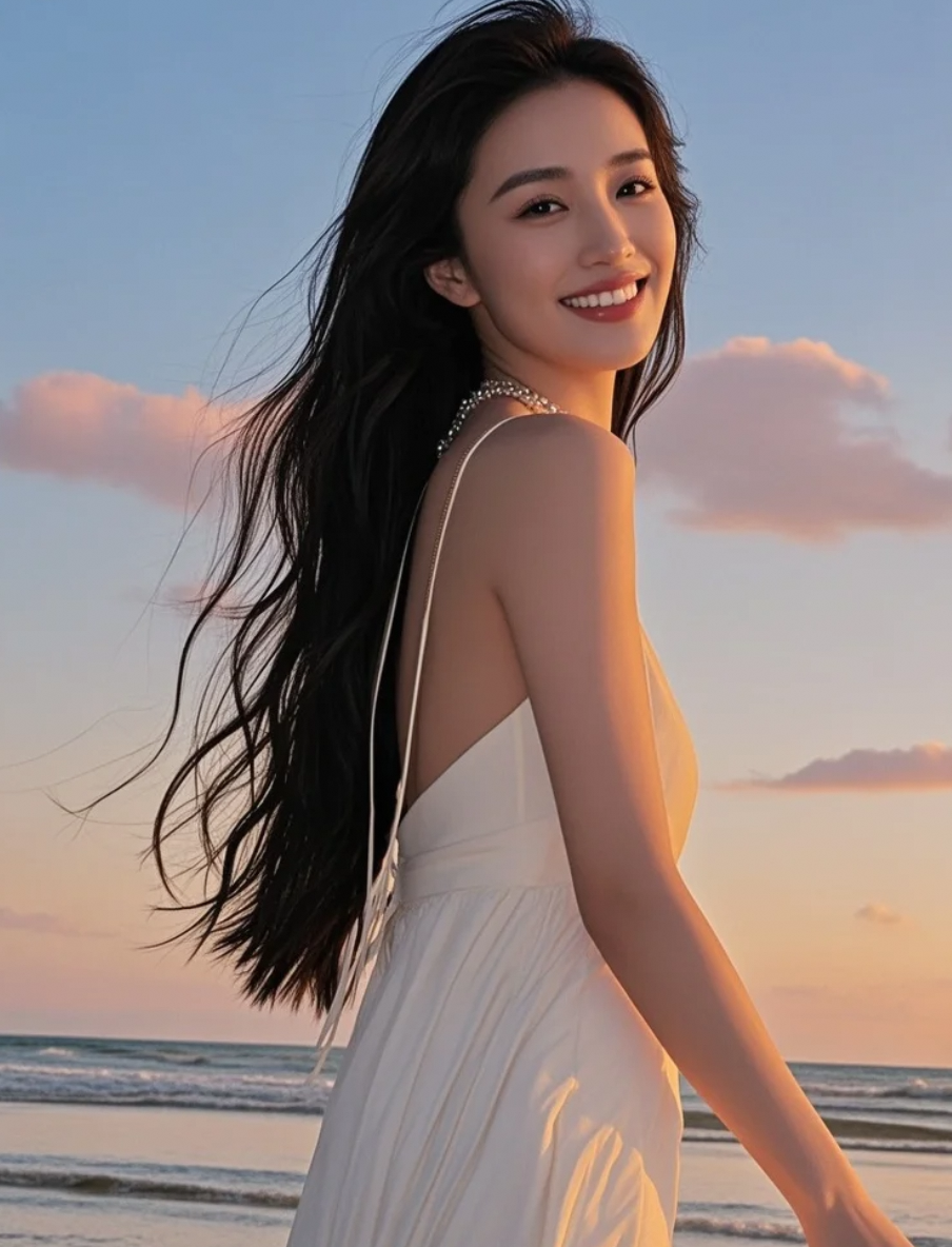 暮色四合,她是沙滩上最温柔的剪影