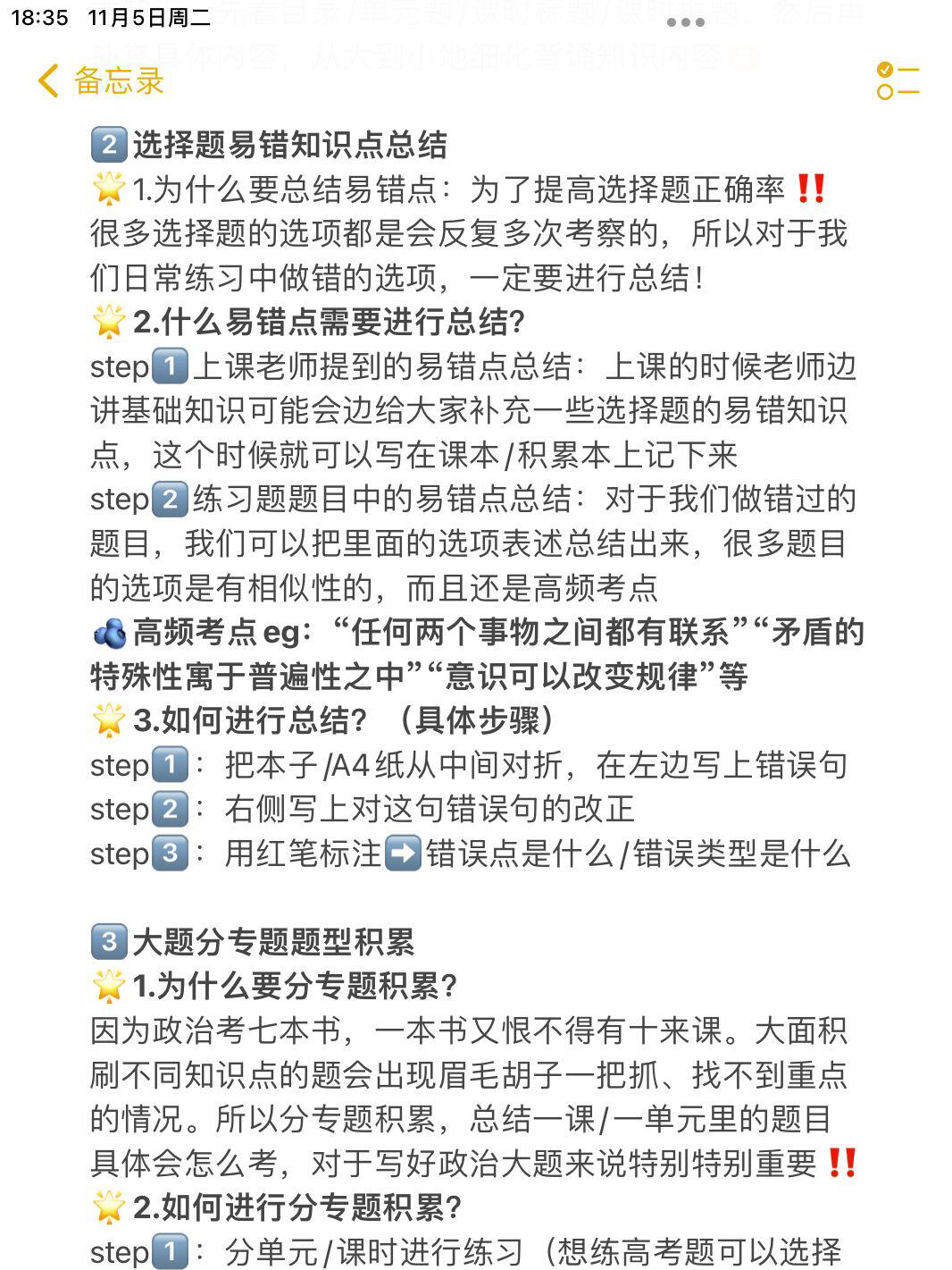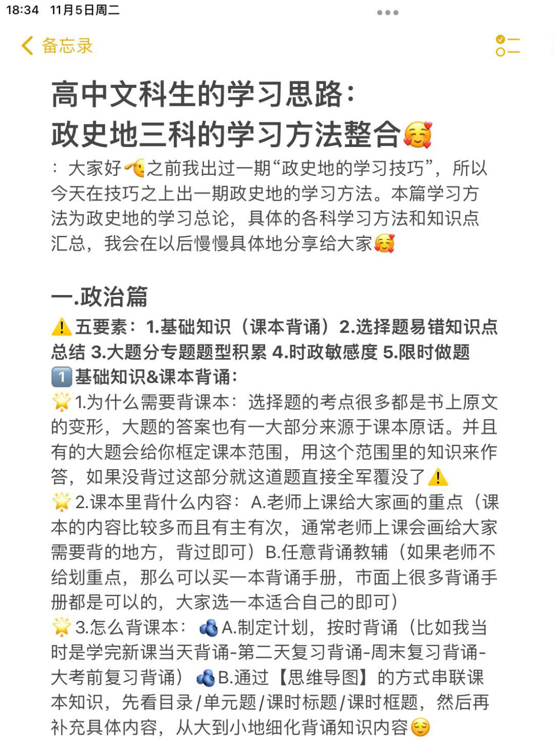 -哈喽大家好! 这是第三期“数学不及格是怎样考上985”的专题分享了, ⭐️前面三篇分别是: 1.如何应对偏科/非天赋型文科选手如何学好数学 2.如何学好文科(文科篇) 3.如何学好文综(文综篇) ➡️今天这一篇的学习经验主要是政史地的, 高考的数学我属于是发挥有些失常 但是最后总分我认为相对不错的原因是我的文综发挥很好 小三门算得上是高中三年考的比较好的一次了。 -但是在高中阶段的历次模考,我的政史地考的并不是很好 赋完分一般都是250-260(有的时候考的特别不好甚至只有230多) 但是我一直没有失去信心 因为我认为我对基础知识的掌握和对高考题的分析都是很透彻很扎实的 然后在高考里就取得了很满意的成绩🙋♀️ -具体的政史地学习方法都在p2之后的图里了 内容有点长,但大家认真看完一定是会有收获的!