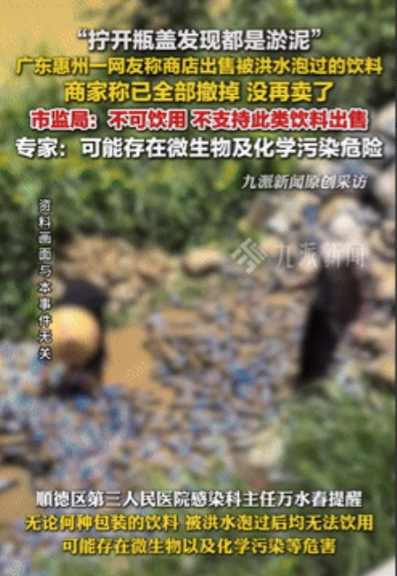 坏了良心了!广东惠州,一女子去便利店买了瓶饮料,可打开后却发现瓶盖里有淤泥,直到她亲眼看到店员,在冲洗被洪水泡过的饮料时,才明白了原因,然而,当她去找商家要说法时,对方的却态度却让她十分气愤! 据九派新闻8月13日的报道,这件事情发生在惠州,女子正在街上走时,突然觉得有些口渴,就到附近的一家便利店买水。 从外表上来看,那瓶水并没什么异样,可直到拧开瓶盖之后,就发现盖子里有很多的泥,脏兮兮的。 因为当地前段时间发生过洪水,所以女子就觉得这水可能是被洪水泡过的,本来这还只是她个人的猜测,直到她看到店员光明正大的,站在外面冲洗被洪水泡过的水时,猜测就变成了事实。 于是她就找到店老板,想为自己讨要个说法,不过对方却还不承认,也幸好她有把店员冲洗饮料的一幕给拍了下来。 就这样,在证据面前老板就愿意把钱给退了,但后面女子也打电话,向有关部门进行了投诉处理,如今该便利店,已经把那些饮料给撤掉了。 对此有医生就说了,不管是瓶装还是灌装的,只要是被洪水给泡过,其实都是不能喝的,里面存在很大的健康风险。 毕竟洪水里可什么都有,垃圾、粪水这种的也存在着,其所带的病菌肯定会转移到饮料上,所以必须要多注意下。 那么对于这件事情,您有什么想说的呢? 信息来源:九派新闻 2025-8-13