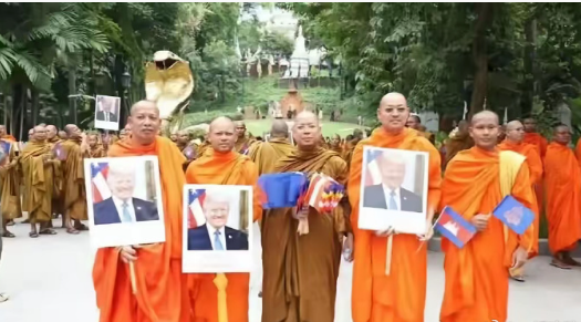 柬埔寨感谢特朗普: 第1、街头挂特朗普头像, 第2、2569名僧人上街,支持特朗普提名诺贝尔和平奖。 第3、首相洪码奈,提名特朗普角逐2026年诺贝尔和平奖, 第4、购买波音飞机10架。