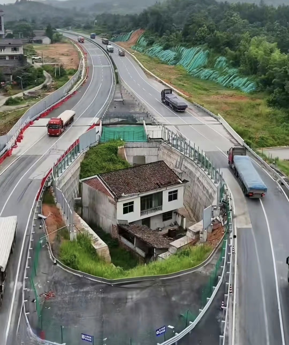 江西“金溪之眼”钉子户终搬离,160万补偿不要,如今荒废成网红打卡地 江西抚州那座被网友戏称“金溪之眼”的钉子户,最近彻底凉了。房主黄大爷一家今年4月悄悄搬走,留下一栋荒草丛生、玻璃破碎的空房,成了网红打卡的“废墟”。 2019年政府修G206国道,开出160万现金+2个建房指标的补偿,但指标分两年给,2024年、202年5各一个。黄大爷咬死必须“一次性拿俩”:“我有俩儿子,得一次解决。” 结果政府直接绕道施工,把他家包进公路正中央。今年4月通车后,卡车日夜轰鸣,门窗震得嗡嗡响,全家人连觉都睡不了。 因绕道施工,隔壁三户意外获拆迁,每户白捡150万。自家却变“景点”,房子被地图标成“现代建筑”,游客举手机围观,但玻璃碎了没人修,出门得钻桥洞。 事后黄大爷含泪坦言:“赌输了,后悔啊!”全家被迫外出租房,荒宅杂草已有半人高。 政府多花百万绕路修桥,黄家丢了新房还倒贴房租。当初若接受分期指标,早住进安稳新房。 这事也告诉我们一个道理:谈判真得有底线。当初要是接了那分期的指标,现在早住进新房了。硬扛到最后,没等来啥天价补偿,倒是落得个日夜被噪音吵,还被全国网友议论。有时候这“钉子户”的钉子,扎疼的可能是自己。