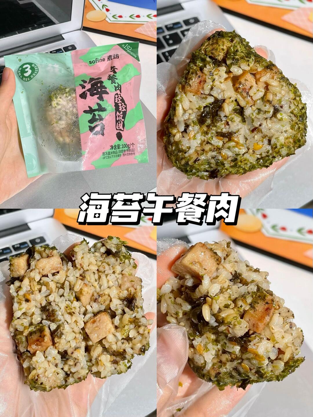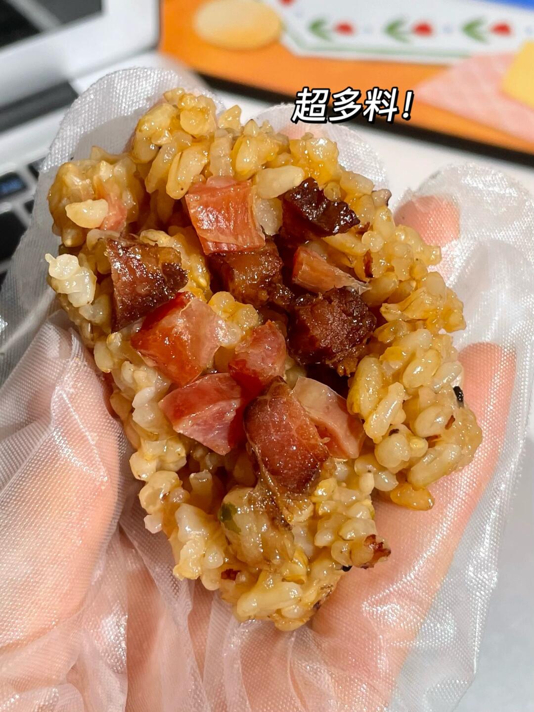 表面超多海苔碎,掰开里面大颗午餐肉!瞬间分泌口水!好吃又顶饱!