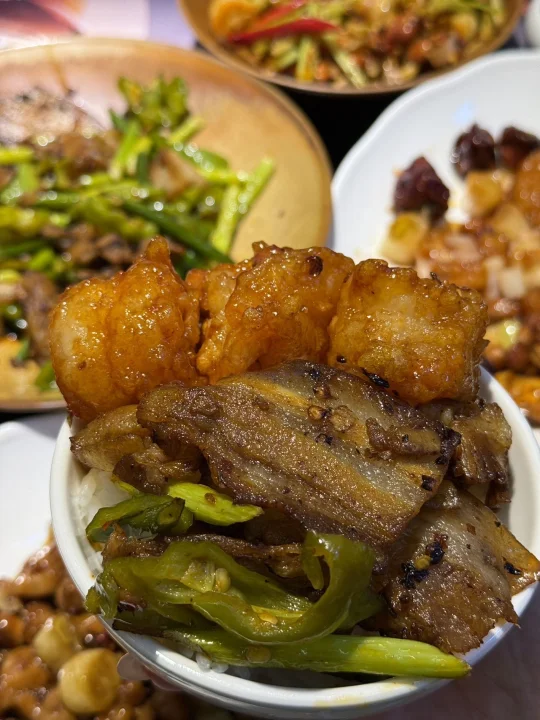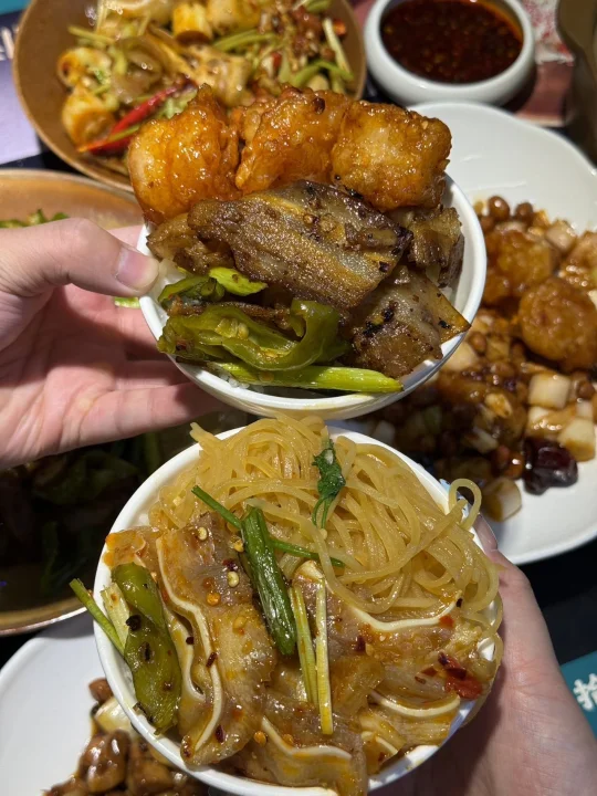 谁懂啊!在水游城挖到宝藏自贡爆炒店,连着吃三天都没腻✨ 江湖土豆丝🥔 脆生生带点辣,配现煮五常米饭🍚 我和朋友狂炫4份,干饭人狂喜~ 宫保明虾球🦐 虾肉Q弹,裹着酸甜酱,一口沦陷;老妈蹄花汤🥣 软烂出胶,喝完皮肤像打了水光💦 宫保鸡腿丁🍗 红油耳片🥩 天府酸菜鱼🐟 过门香回锅肉🥓 每道菜都在线,辣得过瘾又够味! 关键餐巾纸才2元,打工人友好度拉满🥳 妥妥的食堂新据点,锁死🔒
