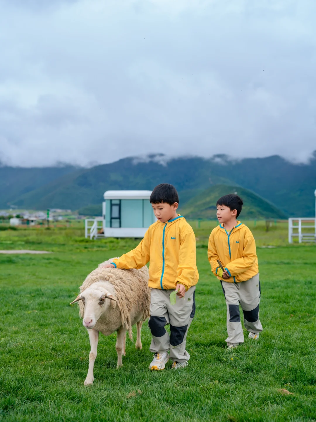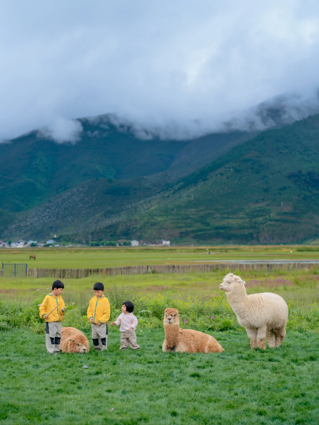 最让孩子们开心的就是牧场的小动物!温顺的马儿🐴和羊驼在屋子门口吃草,几只粘人的狗狗,总在草坪上撒欢,一叫就摇着尾巴冲过来。一群小羊🐏也不怕人,常溜达到门口,那只“领头羊”最有意思,儿子牵上它走,后面真跟着一串小羊🐑,追着跑的画面,够他乐半天。