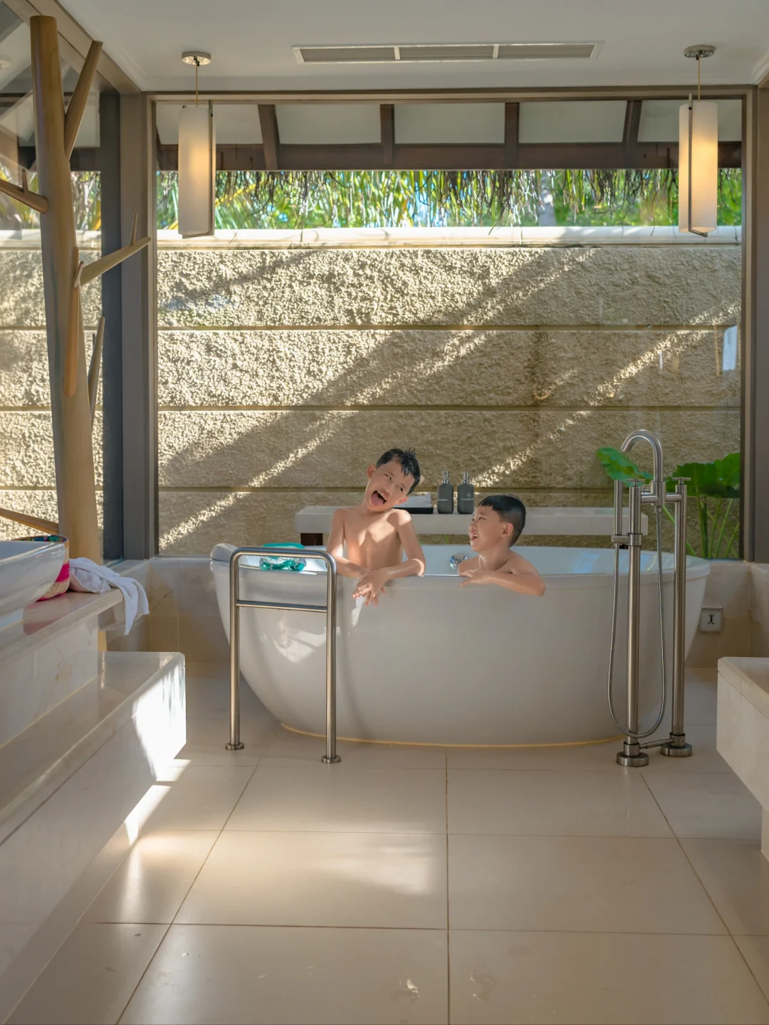 [二R]水上别墅能直接下水,带娃我更推荐海洋泳池别墅,120平,有个大泳池和一个大浴缸,还能躺在院子里观海听涛~