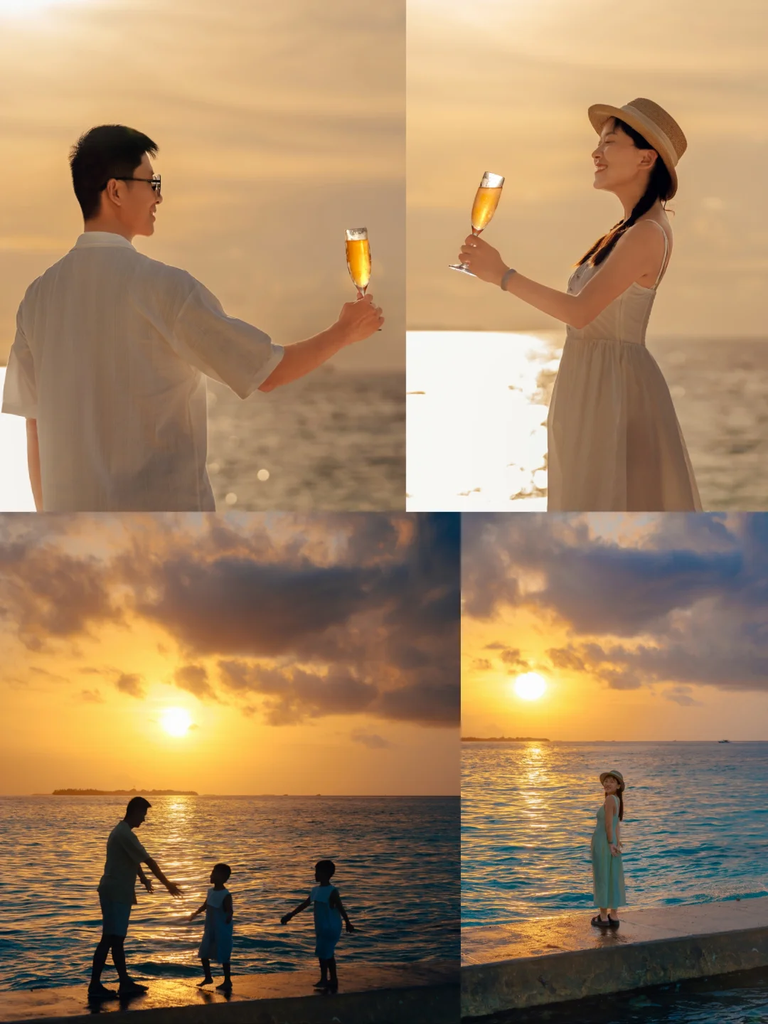一家人躺着洁白的沙滩上,看夕阳落下,渐渐染红海面,现在回想起来都觉得是无与伦比的人生时刻~