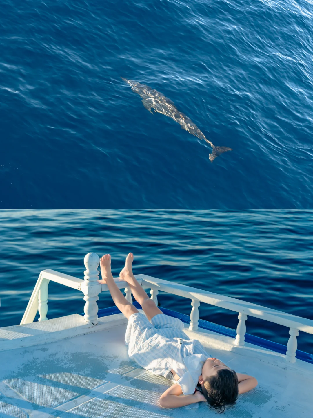我们出海超幸运看到了成群结队的海豚,就在我们船底快速地游、跳跃,金色的夕阳下宛若精灵,整船人都欢呼雀跃,太震撼了!
