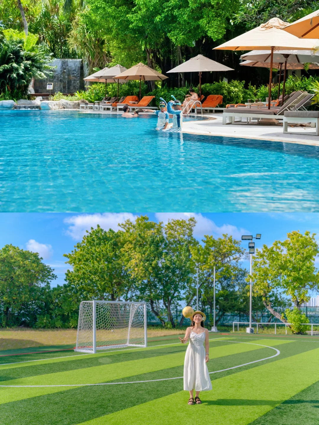 岛上有免费的足球场、网球场、排球场、游泳池和24小时开放的健身中心,还有儿童中心哦。
