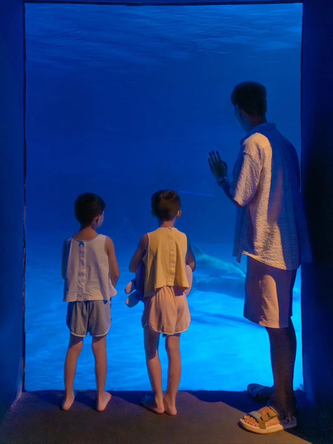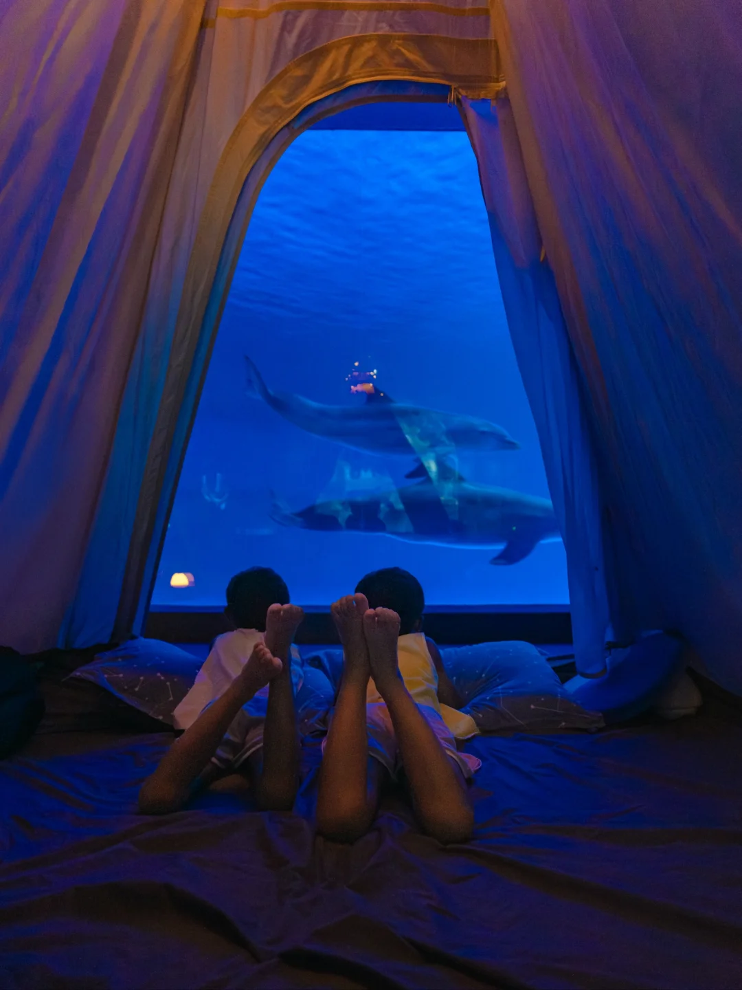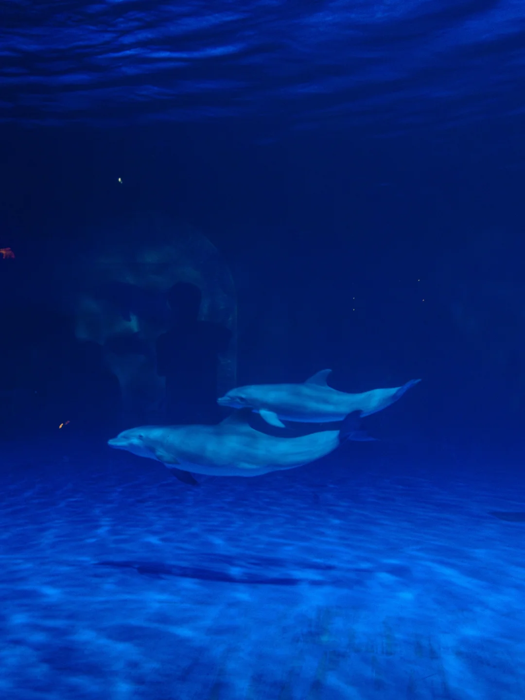 2000多,1大2小夜宿海洋馆,在深海里听着海豚音入睡、和海豚一起游泳🐬,那种宿命感和震撼,我真心觉得太值了~