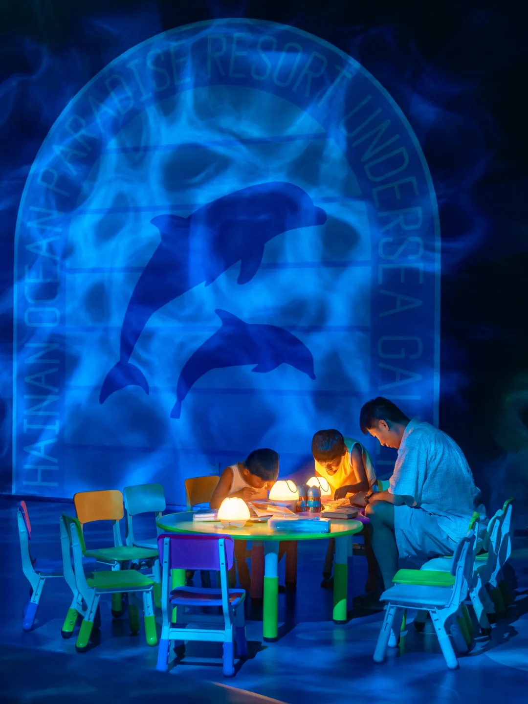 海洋欢乐度假区”小程序→研学专题→探秘海豚家园保育营,1大1小,每晚5组家庭,每周二、四、日开班!