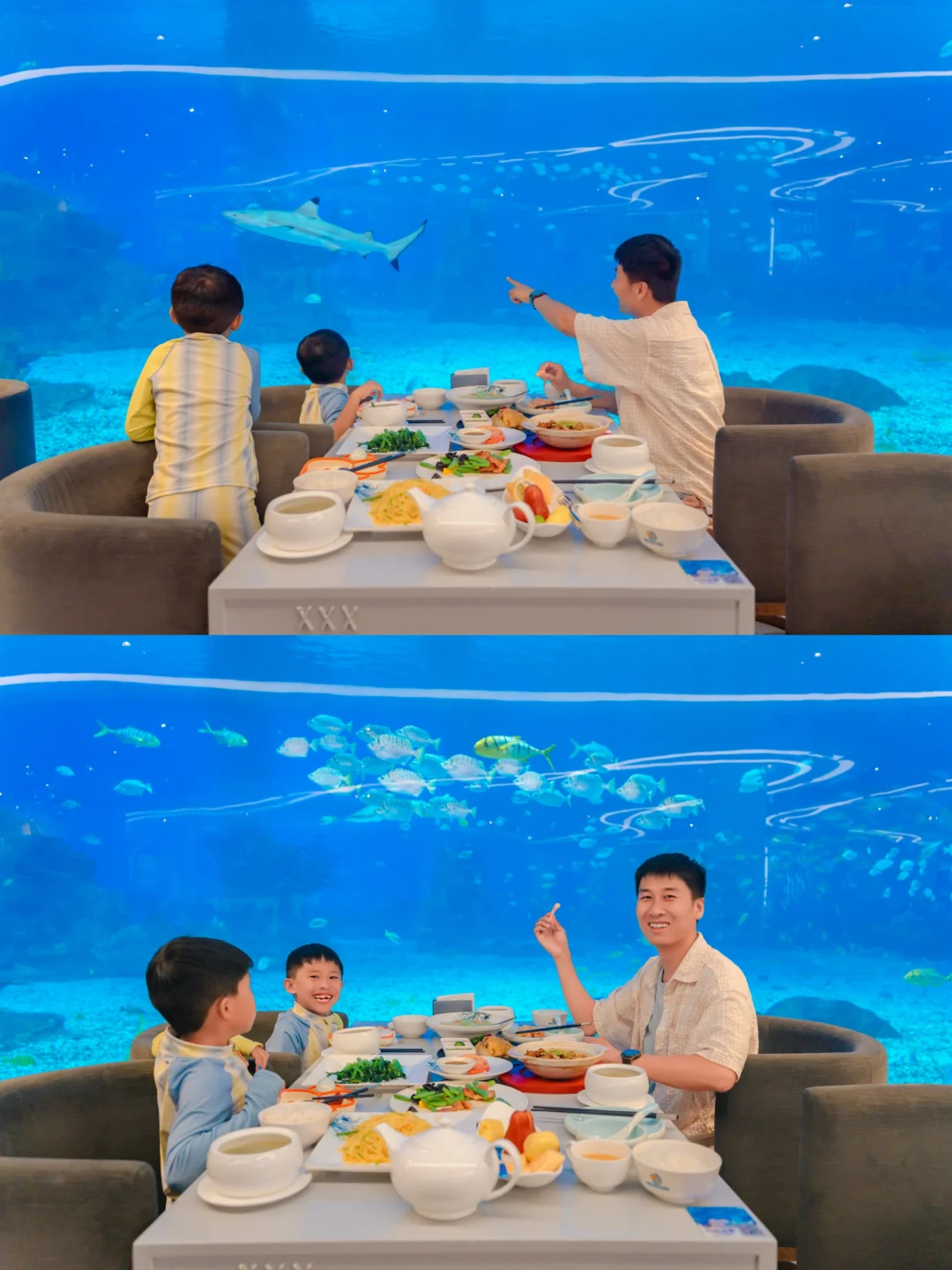 夜宿当天的晚餐+次日早餐,在海底餐厅,可以看着海洋动物吃饭