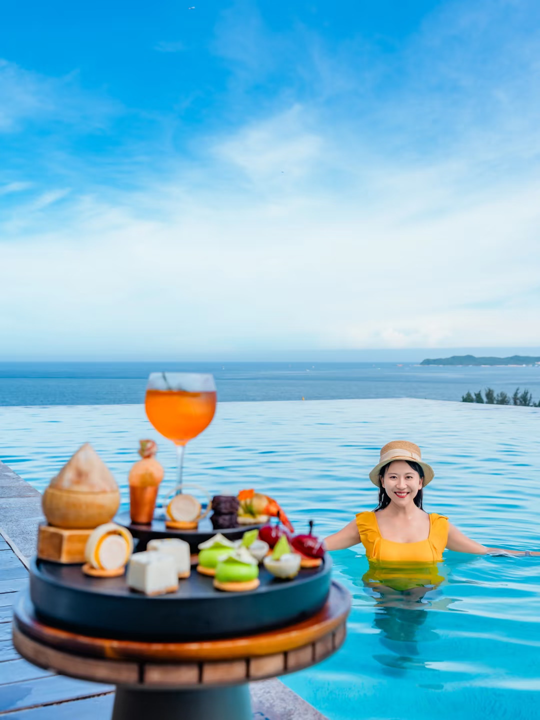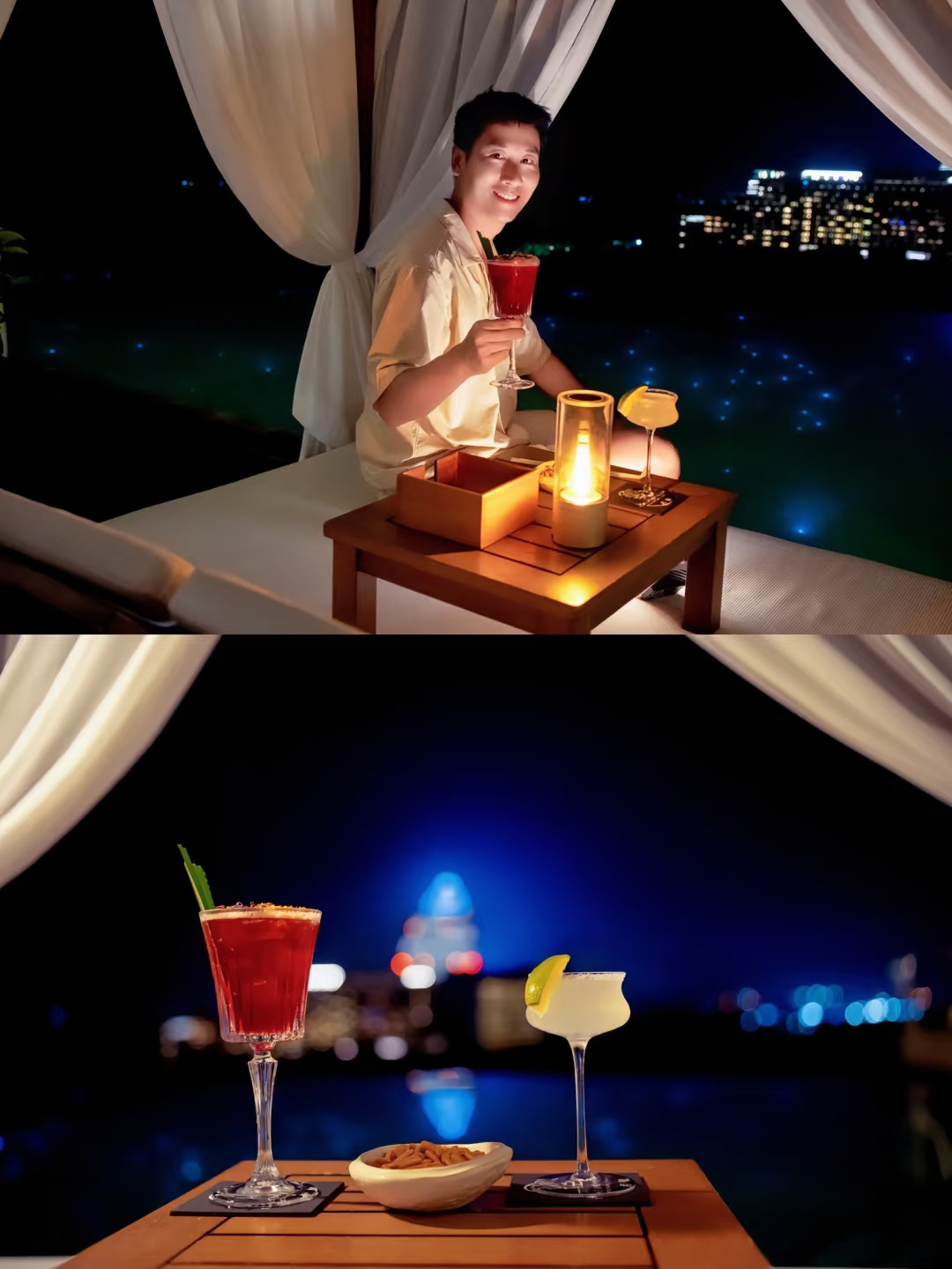 对了,晚上还可以到拾楼去喝鸡尾酒,坐在星空泳池边,看着满天星辰,吹着温柔的晚风,浪漫啊~