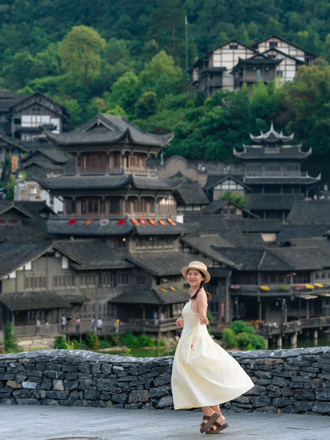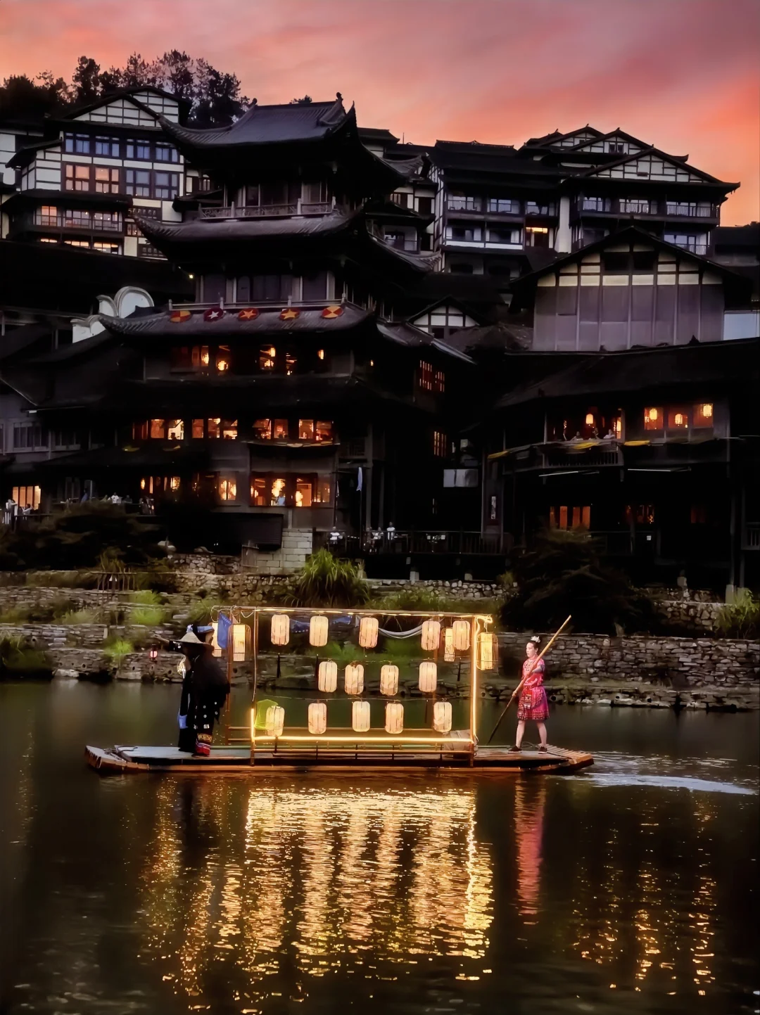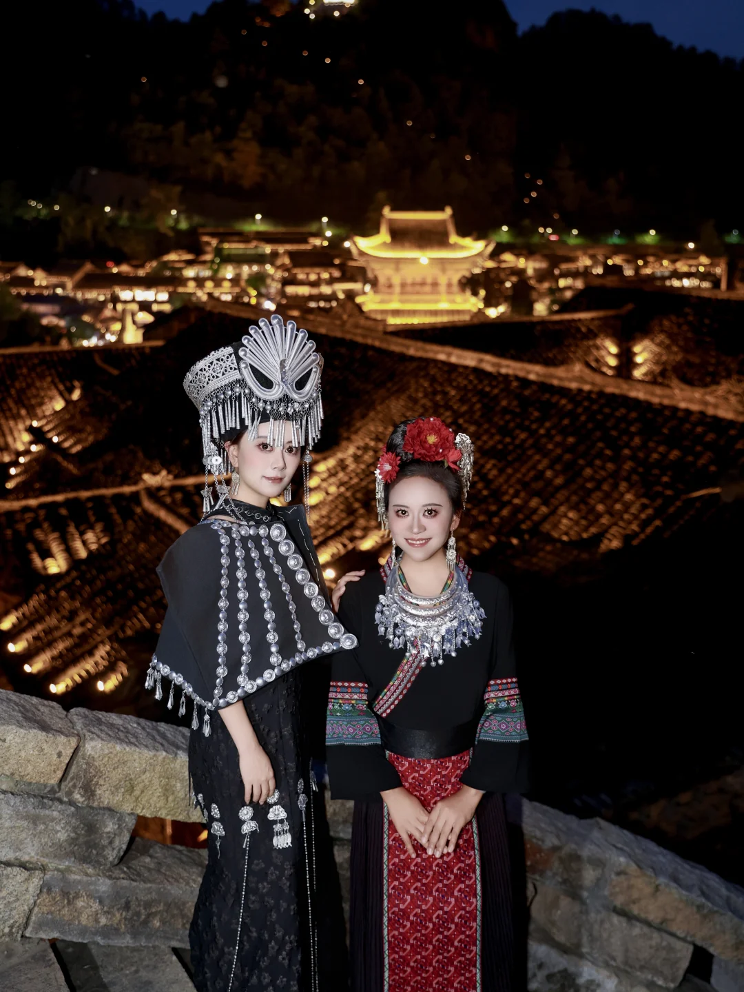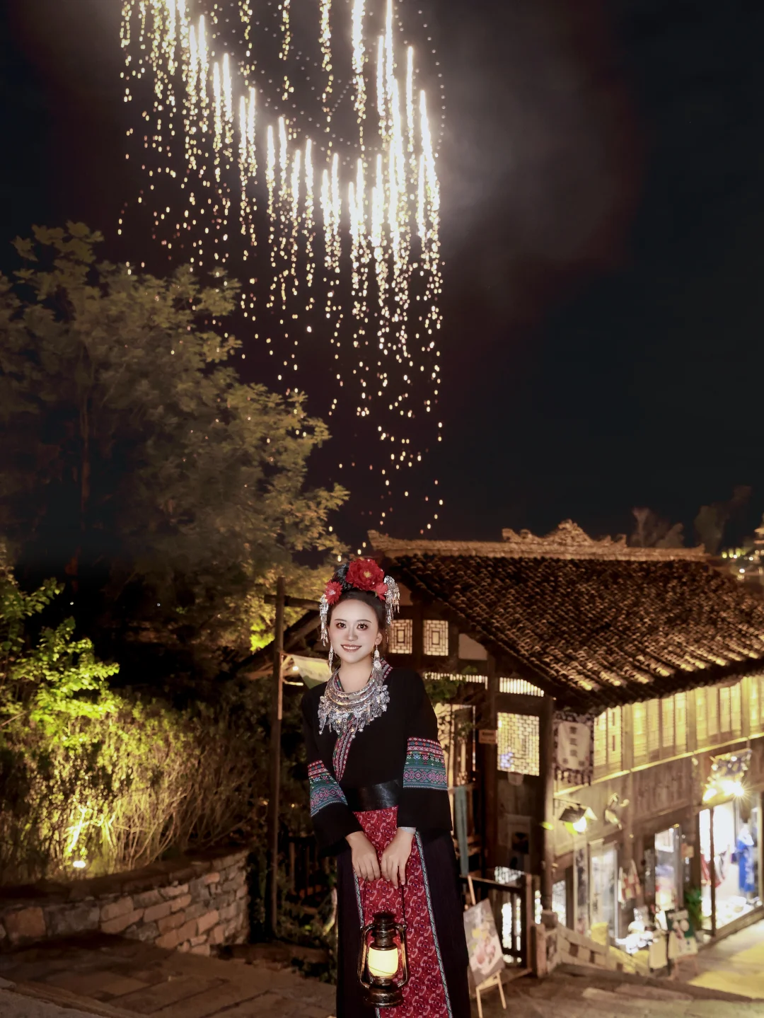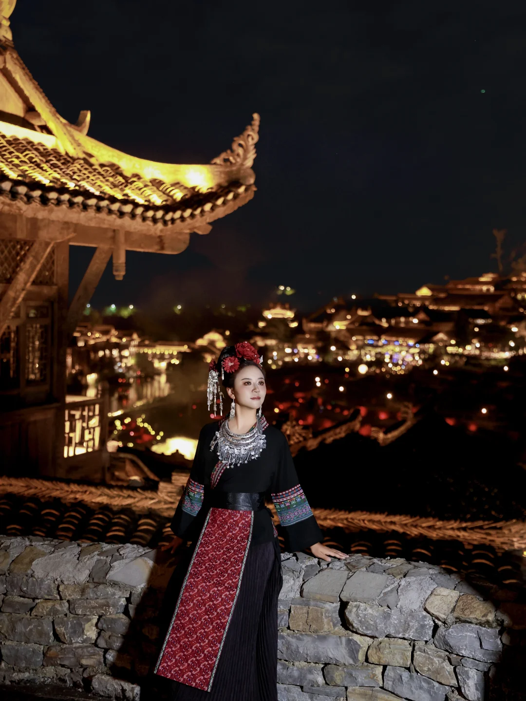 ✅苗服体验: 傍晚灯光亮起时,租一套传统苗服穿着拍照,很有氛围感。