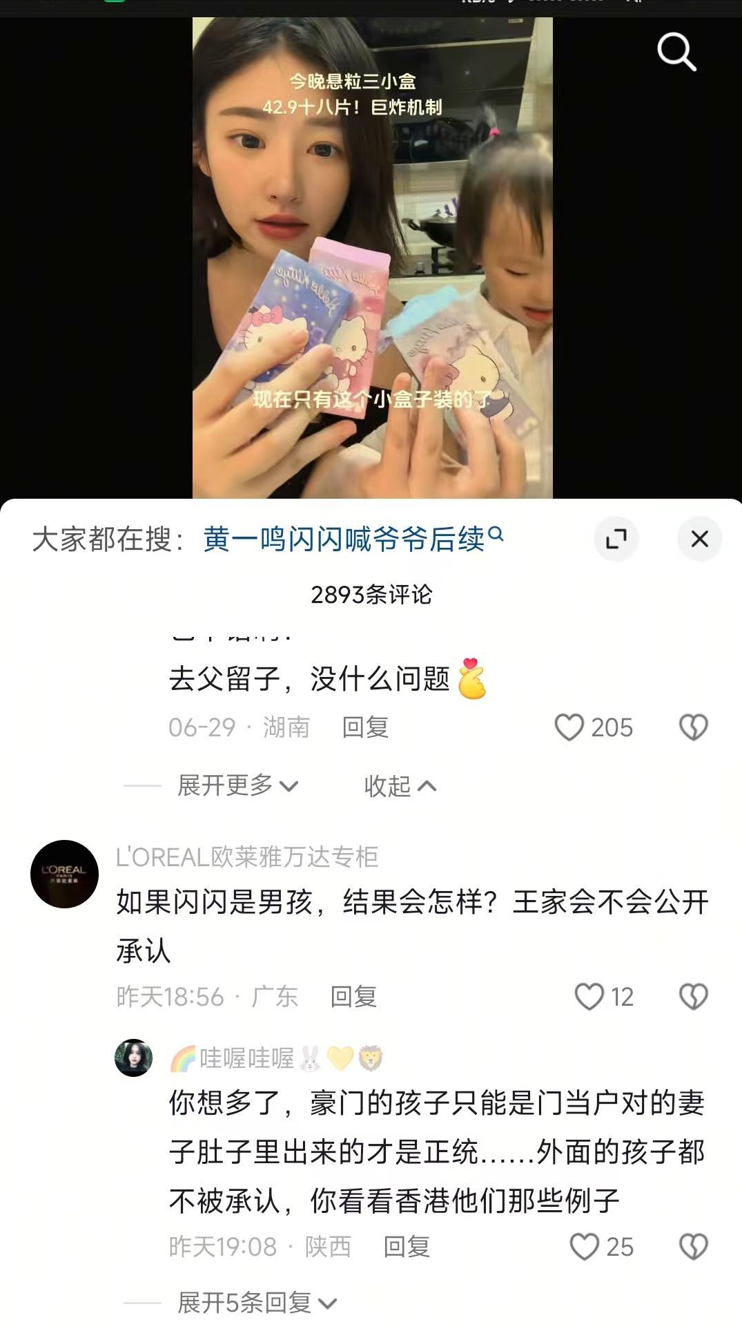 有种预感,黄一鸣不会结婚了! 不是因为王思聪也不是因为没有遇到好男人而是有了闪闪的倍伴没有必要了 你见过把“未婚生子、孩子爹跑路”当“厉害资本”的主播吗?那天我窝在沙发刷直播,本来想看看有没有划算的护肤品,结果刷到黄一鸣,手里的奶茶差点洒在裤子上——满屏都是骂她“消费孩子”“没底线”的评论,她倒好,拿着手机怼着镜头笑:“我刚出大学校门就生闪闪,现在还能把日子过下去,这还不厉害?” 我晕,这操作也太颠覆了吧!以前总觉得单亲妈妈都不容易,可黄一鸣这画风,我都惊呆了,完全摸不着头脑。 说实话,我本来以为主播面对骂声,要么怼回去要么装可怜,结果黄一鸣不一样——网友越骂她“靠闪闪混吃混喝”,她越得瑟,还在直播间掰着手指头数自己的“战绩”:“刚毕业就生娃,闪闪爸爸没给过一分抚养费,我照样把她带大,还搞了两个号!” 这话说得跟炫耀自己考了满分似的,我都绷不住了。 之前我朋友也做过母婴号,本来想靠晒娃的日常吸粉,结果有次娃哭闹被她剪进视频,评论区全说“你这是利用孩子赚黑心钱”,她当晚就把视频删了,还跟我吐槽“赚这钱心里膈应得慌”。对比黄一鸣,人家不仅不删闪闪哭闹说“不要说了”的片段,还特意配标题“萌娃不理解妈妈的辛苦”,这心态也太“强大”了吧?不过又怎样呢,人家直播该卖货卖货,粉丝还在涨,我是真看不懂这流量密码了。 还有黄一鸣是真会搞流量,“鸣鸣酱”140.8万粉,“闪闪酱”42.1万粉,双账号一起运营,这数搁谁看都得说“给力”!但我刷到“闪闪酱”的视频时,却有点郁闷——闪闪看《啾啾》的那片段,眼睛直勾勾盯着啾啾爸爸抱她、带她旅游的镜头,一动不动,跟我小侄女盯着橱窗里的芭比娃娃似的,那眼神里全是羡慕,看得人心里发紧。 后来闪闪回家问黄一鸣:“妈妈是985/211吗?” 我当时还想,这下该聊聊上学的事了吧?结果黄一鸣摸着她的头说:“闪闪乖,妈妈给你养的号都42.1万粉了!” 这就像东北人吃饭不看菜香不香,只看盘子大不大,咋整啊?我妈之前跟我说过,有人讲“养孩子得留三分余地,别把孩子的心事全摊在网上”, 意思就是孩子的小情绪、小敏感,不能当吸粉的素材,不然跟剥了人家的壳似的,多疼啊!黄一鸣咋就没琢磨琢磨这点呢? 总之,一个单亲妈的日常,也是老王造成的,别人也是努力活着而已。祝闪闪健康快乐,天天开心