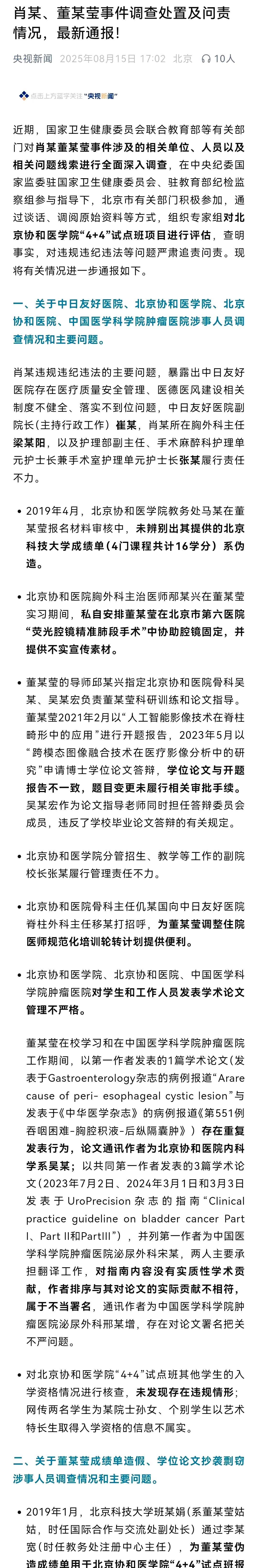 董某莹与肖某的婚外情全国人民都知道。让人搞不懂董某莹背景高深莫测为什么当小三? 一个董某莹坑了太多的人,关键是丢不起那人,都是些人前显贵的主,如今都成了过街老鼠。 董某莹存在成绩单造假、学位论文抄袭剽窃等问题。 因为董某莹受处分的有院长、科主任、护士长、副主任等等十多人,有些人要影响仕途。