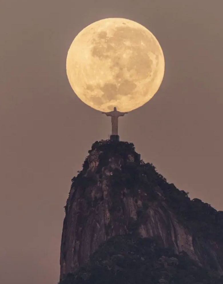 经过三年的尝试,巴西摄影师莱昂纳多·桑斯终于拍摄到了这张令人惊叹的照片,照片中的巴西基督救世主雕像仿佛托着月亮。谢谢摄影师的坚持,让我们欣赏到如此震撼的作品。