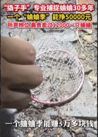 赚大发了!”山东济宁,一男子专业抓蟋蟀30多年,练出了光听声音,就能判断蛐蛐的位置,一年就抓一个多月,一个蛐蛐季能挣50000元,最贵的一只卖到了12000元,但每晚需要走30000多步,网友:缺的是蟋蟀么,缺的是销路! 据美丽浙江8月15日消息,男子的舅舅在抓蟋蟀方面很有经验,他小时候喜欢跟着舅舅,于是接触到了这个行业,每年在这方面投入的时间不多,其余时间还能找份工作做。 辛苦也是真的辛苦,晚上戴着头灯,蹲在地上刨坑,因为去的地方都是麦田,在服装上也有要求,最好不要把自己的皮肤裸露在外面,一个不小心可能就会被虫咬,或者被割伤。 即便有困意,也得克服,不然就白跑一趟,好在收益很可观,让男子坚持了一年又一年,一只蟋蟀,他基本能卖到1600元,数量越多挣的钱也越多。 有时候碰到大方买家,一只卖到上万元也不是不可能,就是得碰运气,累也就累这一个月,毕竟蟋蟀不可能每个季度都出现,物以稀为贵。 如果没把握住机会,就得等到下一年,男子每年出去的时候,会跟着大部队,他们是伙伴,也是竞争对手,就看谁有技巧,因为男子入行早,所以练就了一身本领。 蟋蟀是会发出声音的,只要他处于安静的环境里,他就能找到蟋蟀的具体位置,并逼它出来,到时候再联系买家,钱不就进兜里了。 对于这件事情,大家有什么看法? 信息来源:美丽浙江 2025年8月15日