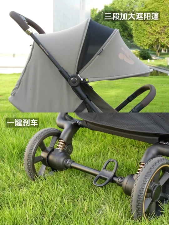 婴儿车的车架是碳纤维车架的,轻便又稳固,整车也才5.5公斤