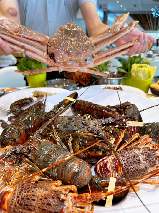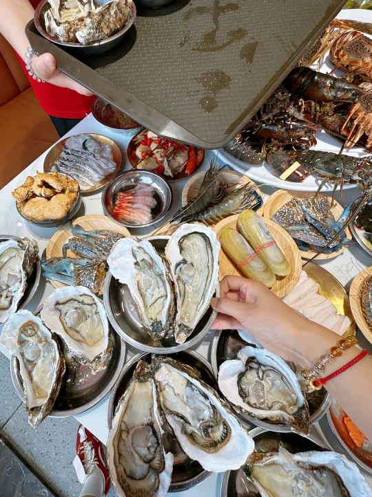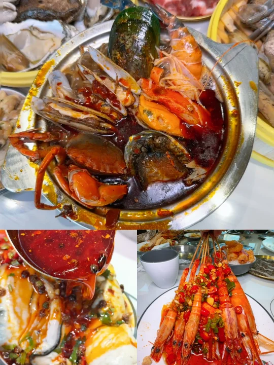 一家藏在写字楼里的海鲜火锅,两面墙的海鲜池种类好多呀,挑花了眼了,帝王蟹,罗氏虾、基围虾个个鲜活,鲍鱼缩着小触角敲可爱~家附近就能吃到活蹦乱跳的海鲜,我太开😘心😘啦🥰🥰🥰