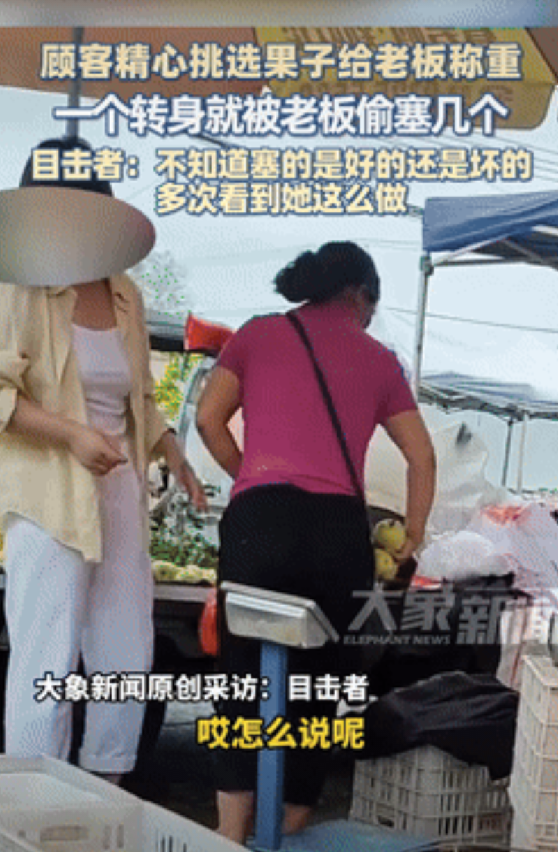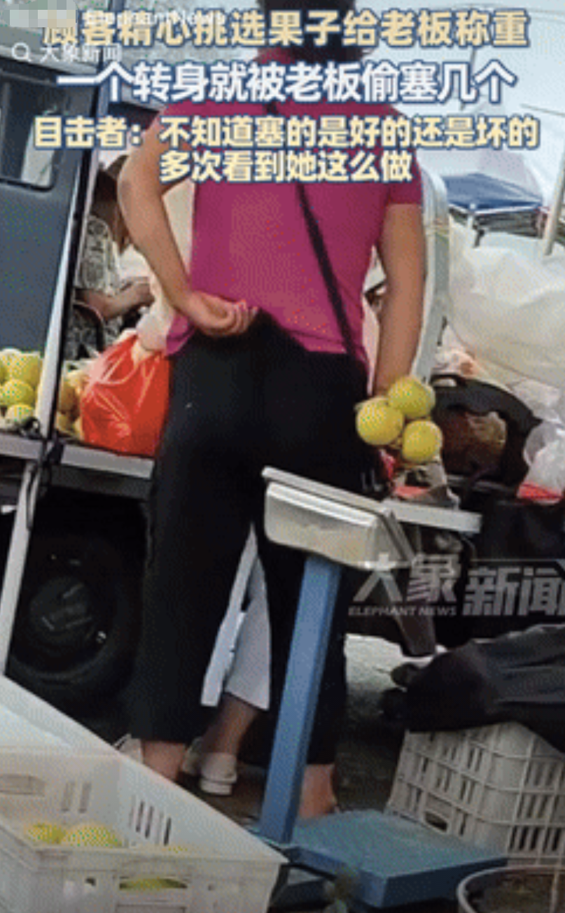 坏了良心了!江苏连云港,一女子去路边摊买水果,挑选完后让摊主称重,不料,就在摊主接过袋子后,让人十分气愤的一幕发生了,网友:这老板做生意真不实在! 据大象新闻8月16日的报道,女子在一番精挑细选后,就装了大半袋子的水果,接着就把袋子递给了摊主,让其称下重量,看看要多少钱。 然而,就在接过袋子的那一刻,摊主利用转身的时机,往袋子里装了好几个果子,然后才去放到秤上。 因为在女子挑选果子的时候,摊主就已经把几个果子给拿到手里,所以当后面的那位路人看到时,便拿出手机开始录像,为的就是像看下摊主完底想搞什么鬼,结果那一幕就被完完整整的拍了下来。 对此拍摄者也说了,摊主往里面放的果子,也不知道到底是好的还是坏的,不过,想来肯定是次果,放好的果子不太现实。 所以说,当大家去路边买东西时,像蔬菜、水果和肉类等食物,千万要留个心眼,最好时刻盯着老板的动向。 不然遇到了黑心的商贩,可能就会遇到此类的情况,事后你想找对方要个说法,都没有地方可去。 毕竟这种流动商贩,随时都可以跑路,这天涯海角上哪里去找,实在不行就去超市里买,起码那里都是明码标价的,就是价格可能会贵些,但对应的售后也有保障。 那么对于这件事情,您有什么想说的呢?