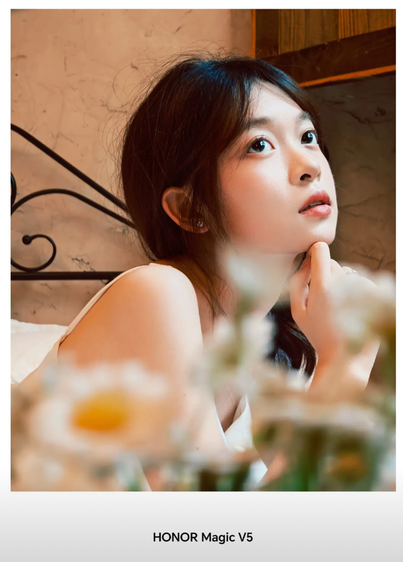 刚刚看到荣耀首席影像工程师罗巍,分享了一组利用荣耀Magic V5拍摄的人像写真,整体效果还是蛮令人惊艳的,尤其是那种王家卫氛围动态模糊,以及胶片质感的时光记忆,让潜望长焦人像的肤色效果,得到的色彩过渡,更贴近真实肤质,大家说对不对? 咱们一起再来看看,荣耀Magic V5影像硬件配置,主摄搭载1/1.56英寸索尼IMX906传感器,以及F/1.6 大光圈,而且还配置OIS光学防抖,就问问大家强不强?6400万像素潜望长焦镜头,居然还支持3倍光学变焦!70mm原生焦段,搭配F/2.5G光圈拍人像绝绝子! 那么大家觉得现阶段,购买大折叠屏适不适合自己呢? 咱们一起来讨论下吧!
