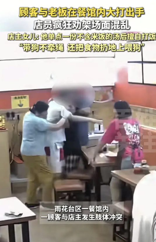 这世道是怎么了呢。江苏有一名男子带着爱犬进店用餐,不但没给爱犬拴绳,还把饭倒在地上喂狗,老板看到后便提醒了这名男子。男子很是不满,过来理论时还戳到老板的额头,随后双方发生冲突,在店里与老板大打出手。其实爱狗人士把狗当作自家一员,这也能够理解,但是有很多人害怕狗、不喜欢狗,也得顾及一下他人的感受。出门给狗戴上口罩拴上绳子,大家不会那么多人排斥狗了。