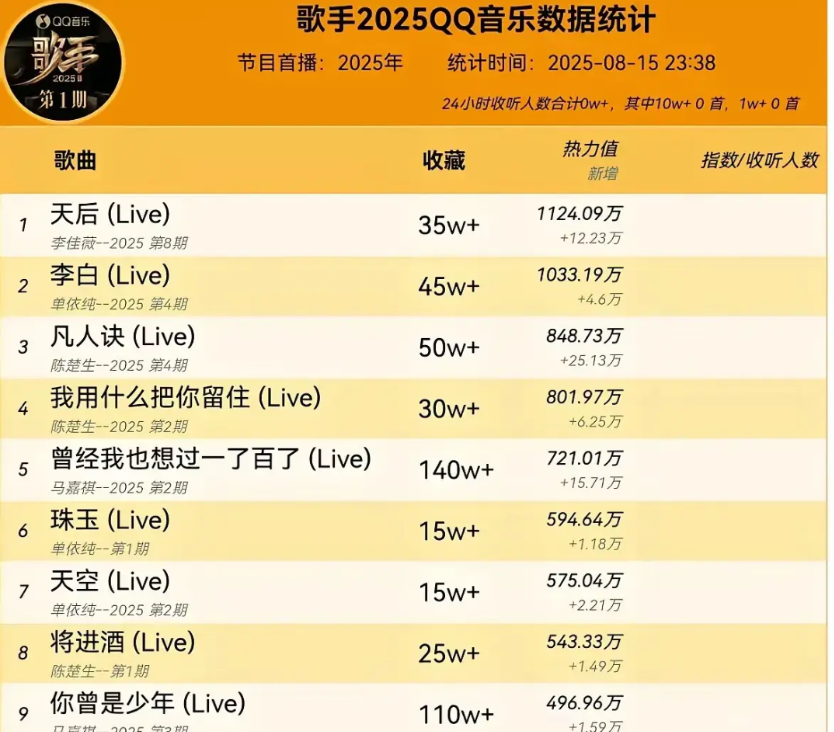 歌手2025真正出圈的歌曲只有李佳薇的“天后”和单依纯的“李白”,这两首翻唱歌曲