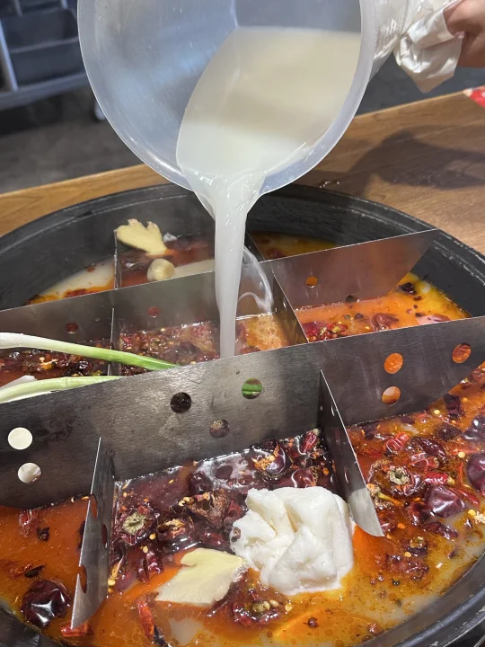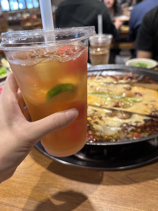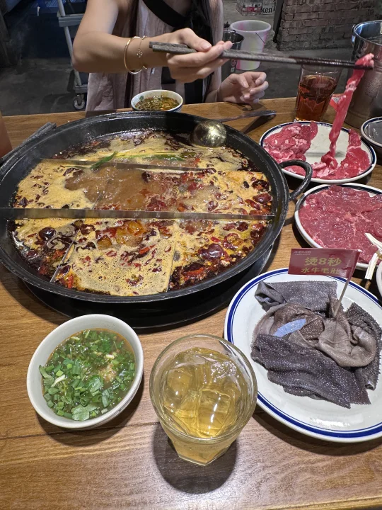 看到网上爆火的水火锅 很感兴趣 去吃了 全哥的火锅 锅底确实是加的这个高汤 菜也挺新鲜的 还有免费的冰粉和水果茶随便喝 这个胖胖的金针菇也是我的最爱 但是我觉得还是牛油和清油火锅香!!我要永远为他们举大旗!这个水火锅味道太淡了 比较适合吃不了辣 肠胃不好的人 有点像加了一点油的炖菜 实在太没吃火锅的感觉了火锅