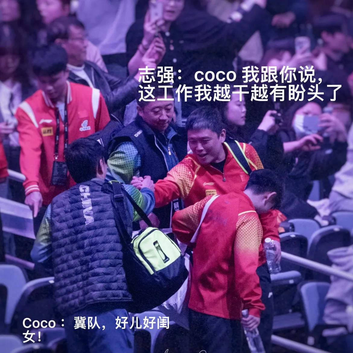 冀队赢麻啦!!! 恭喜孙颖莎夺得仁川冠军赛女单冠军🏆! 恭喜梁靖崑夺得男单冠军🏆! 赛后志强一把拉过coco 拥抱了一下: 志强:coco 我跟你说,这工作我是越干越有盼头了 Coco :咱们的好大儿,好闺女,真争气啊! 另:亲爱的头,你的甜和妹要回来啦! 孙颖莎