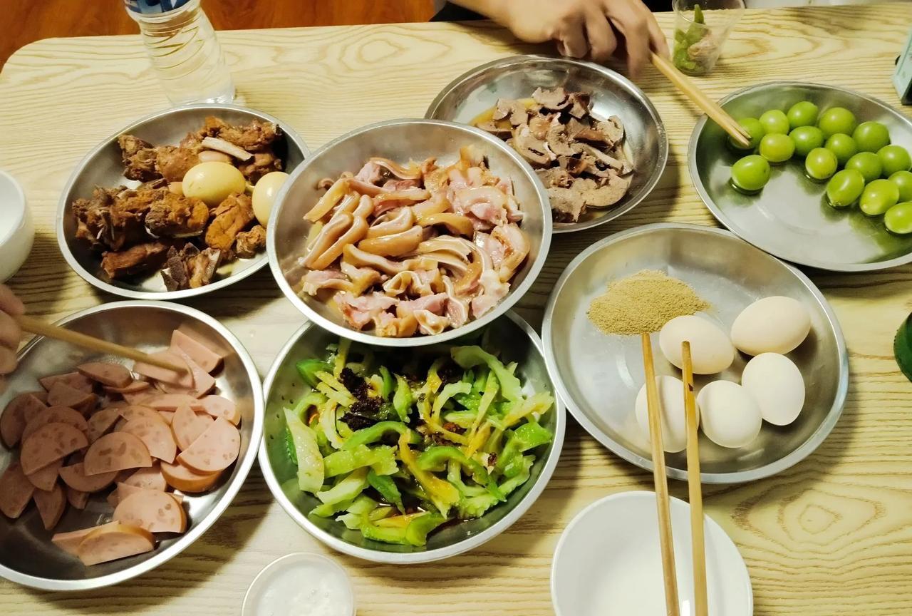 今晚三口人的晚餐:自己卤的排骨、猪心、卤蛋、还有猪耳朵;又切了一根火腿;煮了五个活珠子;凉拌一个苦瓜。感觉可以吧,有食欲吧! 熊孩子只吃他面前的排骨和火腿,别的东西是不碰的。我和他爸两个人喝点小酒,也吃光光,今晚这些东西刚刚好,一点没浪费。 熊孩子今天早上才从同学家回来,因为同学今天又要补课了,没人和他玩了,所以依依不舍的回来了。回来照常空调间玩手机,这边有饭就过来吃;或者他自己点外卖,一天三顿饭,一顿不少。 我问他想去哪里玩?还有十天八天带他去转转,他说无所谓。我说:这段时间气温挺高的,还是很热,我们去海边吧!他一口拒绝,不去海边。 我说:那去花果山或者泰山看看都可以。他又说:不想去。我说那去南京吧,夫子庙吧,到那边到处去逛逛。他又吞吞吐吐没个准确的回答。真的不知道他心里在想什么,归根结底还是不想动…… #卤水晚餐#