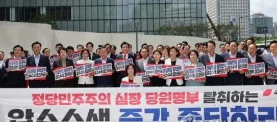 8月18日韩国国民力量党非常对策委员长兼院内代表宋彦锡等议员,在特检组办公室所在地——首尔钟路区KT光化门大厦西侧,召开现场紧急议员总会,手持标语牌,谴责针对在野党的政治镇压、报复性搜查扣押行为。 当天,约50名国民力量党议员连续行动,不仅在光化门特检组办公室前抗议,还转至首尔中央地方法院,两次召开紧急议员总会。宋彦锡在特检组办公室前痛斥,特别检察组企图通过搜查扣押获取500万党员名册,将全体党员当潜在罪犯,行径公然违宪违法,国民力量党绝不低头,将与国民、党员抗争到底。 检察官出身的朱镇宇议员指出,特检组是执政党偏向性设立,应返还搜查扣押令,客观调查。朴俊泰议员提议,即刻启动紧急问卷调查,征求对搜查扣押及法院令状恰当性的意见,并发起谴责签名运动。 在首尔中央地方法院,宋彦锡怒斥法院长期充当李在明政权“侍女”,如今成特检组令状“自动签发机”。法官出身的张东赫议员也痛批,特检组疯狂,法院随意签发令状,已沦为政权爪牙。 国民力量党议员在国会召开总会,决定组建专项小组,在令状执行期限内守护党部。宋彦锡表示,将非常对策委员长办公室迁至党部,议员分组轮值。他还提及,执政党选在全党大会前夕召开国会全体会议,意图破坏全党大会,已向国会议长请求调整日期。