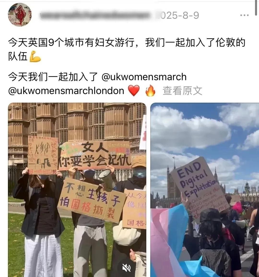 我国的“女拳师”竟然在英国也能“打拳”?据国外网友透露,最近有些在英国的中国“女拳师”,在英国也搞事情。 她们的那些主张,一个个看起来非常雷人。煽动男女对立,充满了恨国言论。 既然如此,为啥她们不用英文而是中文?而且这些标语这么刚,为啥一个个都遮住脸不敢摘口罩? 所以,我一直认为最近几年泛滥的所谓“女权主义”,其实和当年HK废青后面的欧美国家有很大关系。她们并不是单纯为了女性平权,而是有其他目的。如今,她们的面目越来越清晰了。#女拳师# #制裁拳女#