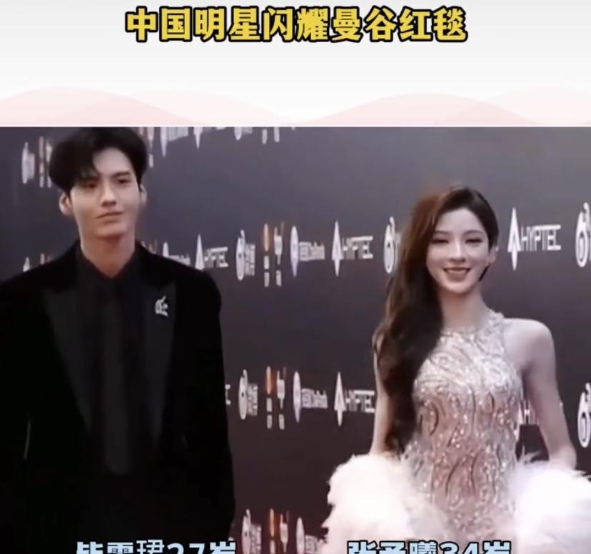 张予曦穿红色碎钻拖尾礼裙,搭配湿发与泰式领口剪裁,像“热带红玫瑰”,被泰媒赞为“复古名伶”;毕雯珺身着深色天鹅绒西装,尽显“贵公子”气质。187cm的他和168cm的张予曦身高差超萌。 红毯上毕雯珺主动为张予曦整理裙摆,两人还疑似戴情侣戒指。内场合唱《有点甜》,糖分爆表,最终斩获“泰国最受欢迎荧幕情侣奖”,真是实力与颜值并存!