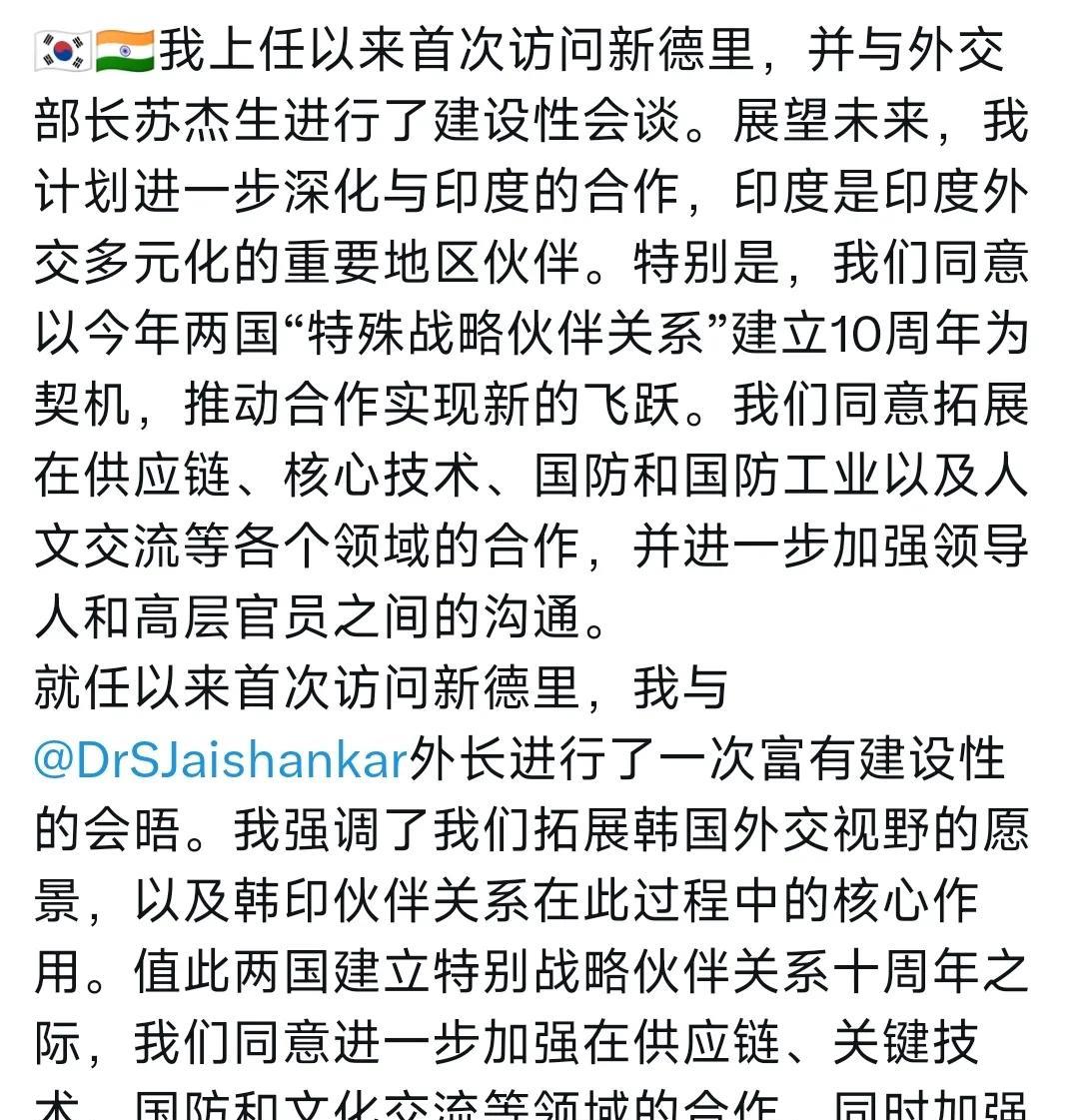 8月16日,韩国的新任外长赵显在访问完日本和美国之后,来到了他上任之后的第3站印度,并且和印度外长苏杰生举行了双边会谈。 有意思的是,赵显上任之后,首先进行通话的就是日本、美国、中国和印度这4个国家。但在出访安排当中,却独独跳过了中国,这背后到底是什么原因呢? 就说头两站的算盘吧,美国是韩国的“安全供应商”,驻韩美军2.8万人,每年军费分摊110亿美元,韩美贸易额2024年达1720亿美元,占韩国外贸总额的12%。 而赵显去华盛顿,其实就是去“续费”——美国刚放出话要削减驻韩美军规模,韩国急着表忠心,顺便求点好处,比如让美国松松半导体设备出口限制,毕竟韩国70%的半导体设备依赖美国技术。 还有日本,别看韩日天天吵历史问题,2024年双边贸易额还顶着1030亿美元,日本是韩国第二大半导体材料供应国,光刻胶占韩国进口量的83%。 赵显访日时,两家签了个“半导体供应链备忘录”,简单来说就是“你别卡我材料,我也少提慰安妇”。 这种“利益优先”的默契,比教科书里的历史仇恨实在——韩国现代汽车在日本的销量涨了18%,丰田也在韩国卖起了电动车,企业早就用订单投了票,政客们不过是顺水推舟,把民间的“经济联姻”盖个官方戳。 而印度这步更是“押注未来的潜力股”。韩印贸易额从2014年的150亿涨到2024年的280亿,虽然不算多,但印度的手机市场70%是韩国品牌,三星在诺伊达的工厂雇了8万人。 更关键的是,印度在“印太经济框架”里跟韩国眉来眼去,都想在芯片制造上抢中国的份额。 赵显带去的“10亿美元技术合作基金”,看着像援助,实则是给三星、LG在印度建厂铺路,这种“放长线钓大鱼”的操作,比盯着眼前的仨瓜俩枣划算多了。 跳过中国的原因,说复杂也复杂,说简单也简单。韩中之间那点事,就像堵在喉咙里的鱼刺——萨德问题没彻底解决,中国对韩国化妆品、汽车的反制余波还在,2024年韩国对华贸易逆差137亿美元,是十年前的3倍。 可赵显刚上任,根基未稳,要是先访华,国内保守派肯定骂“向中国低头”,在野党会拿着萨德旧账说事,还不如先攒够“美日印护体”的底气,再回头跟中国谈,到时候腰杆能硬点。 更现实的是,韩国想在中美之间玩“走钢丝”。美国逼着韩国选边站,要它加入“芯片四方联盟”围堵中国。 中国是韩国最大贸易伙伴,2024年贸易额2200亿美元,占韩国出口的24%,三星、SK海力士在中国的工厂贡献了全球35%的存储芯片产能。 这种“两边都得罪不起”的处境,让韩国的外交像夹在婆媳之间的儿子,先去讨好强势的一方,再回头哄另一边,虽然狼狈,但至少能暂时稳住局面。 但中国市场的分量韩国不可能真无视。韩国的化妆品企业爱茉莉太平洋,2024年在中国的销售额占全球41%,LG新能源在南京的电池工厂供应着特斯拉上海超级工厂。 这些企业的老板们肯定在给总统府递纸条,催着赶紧安排访华。 赵显现在跳过,不过是“欲擒故纵”,等把美日印的好处揣进兜里,再带着“我不是孤身一人”的底气来谈,到时候谈汽车关税、半导体出口,筹码能多几枚。