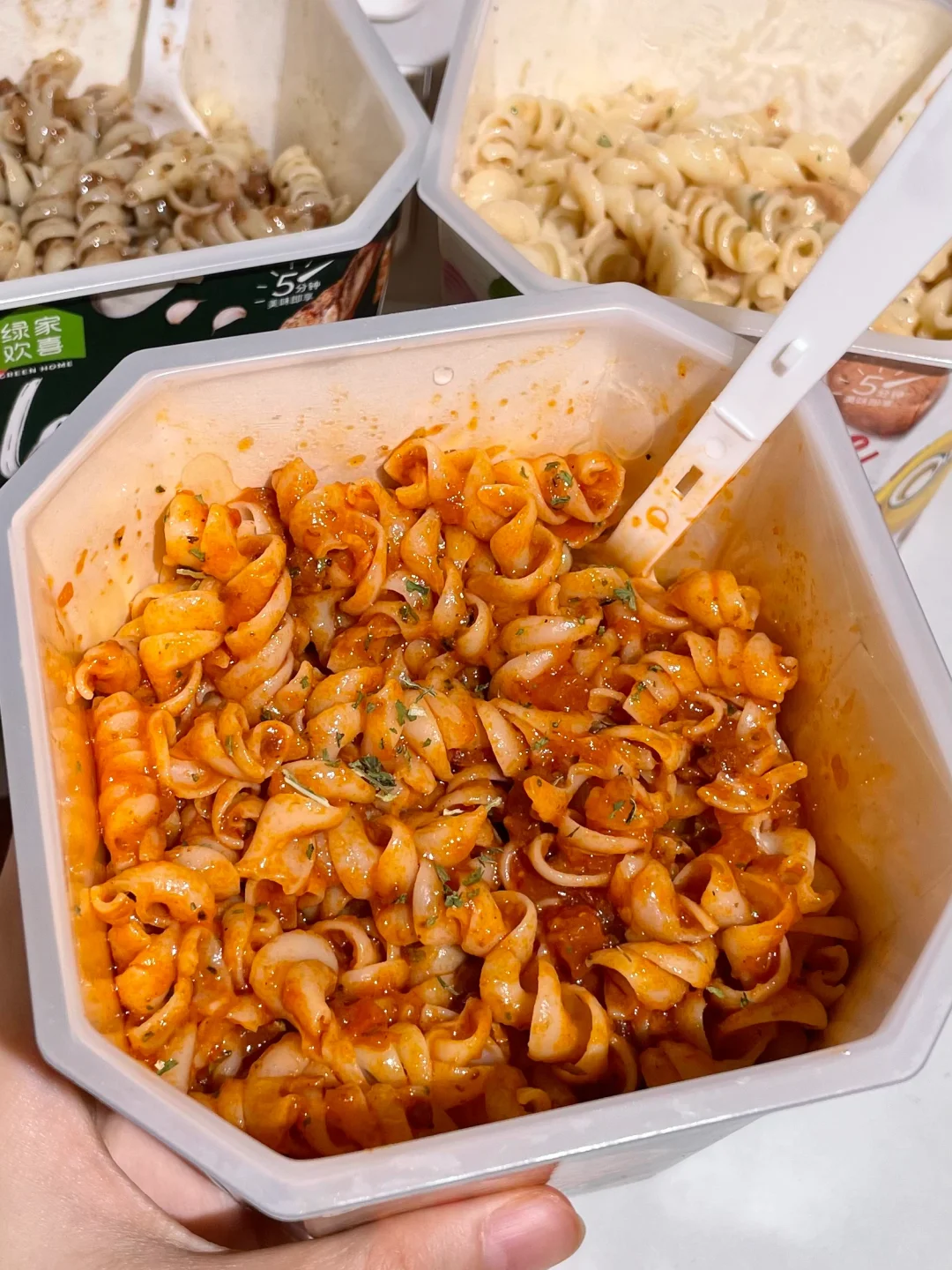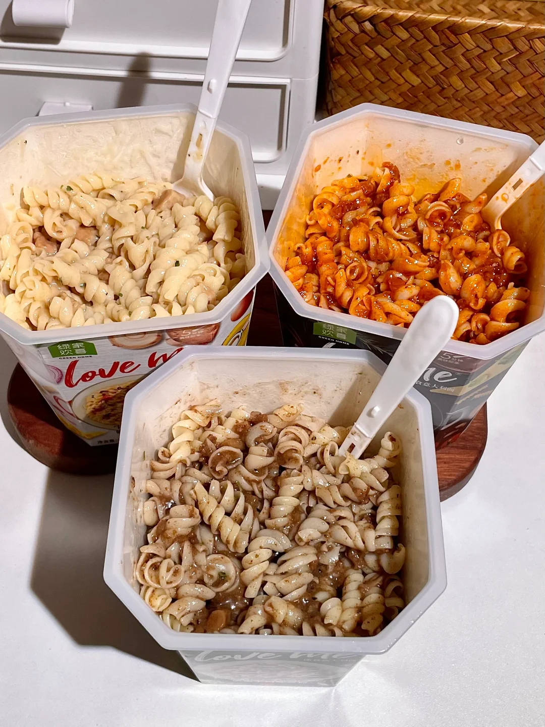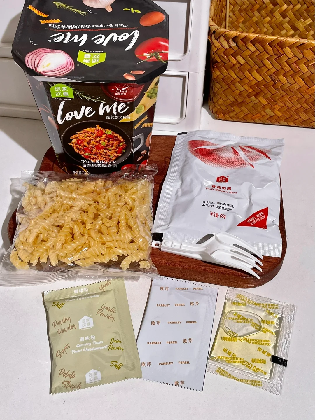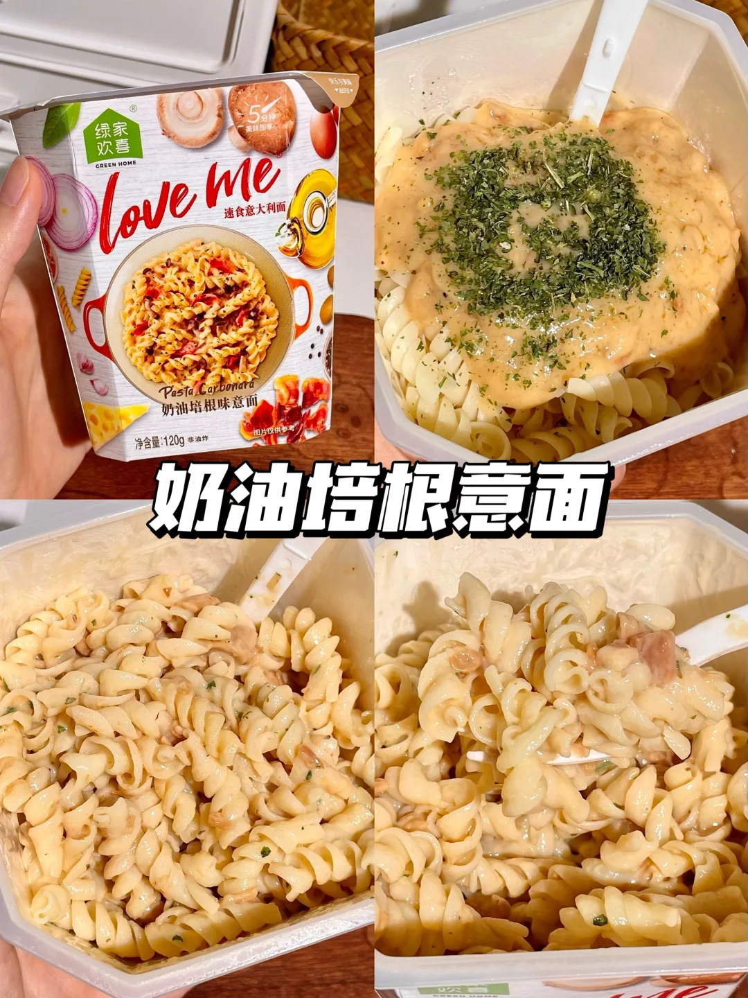 在家五分钟吃到西餐厅水平的意面! love me你真的有点东西!!! 三种风味:番茄肉酱/奶油培根/黑椒牛肉 🍅番茄肉酱 超浓番茄味!还有番茄颗粒!口感老丰富了!酸酸甜甜的,超经典的口味!小朋友也很爱! 🥓奶油培根 每次去西餐厅都会点!没想到在家吃的一点不输外面的!芝士🧀奶酱裹满每一根意面!还有培根在里面! 🐂黑椒牛肉 这个口味也是经典不出错的!黑胡椒搭配牛肉,百吃不腻!低GI的意面吃起来无负担! 意面口感爽滑Q弹!饱腹感十足! 而且自带配料还有叉子,吃完还不用洗碗,解放双手超方便!!