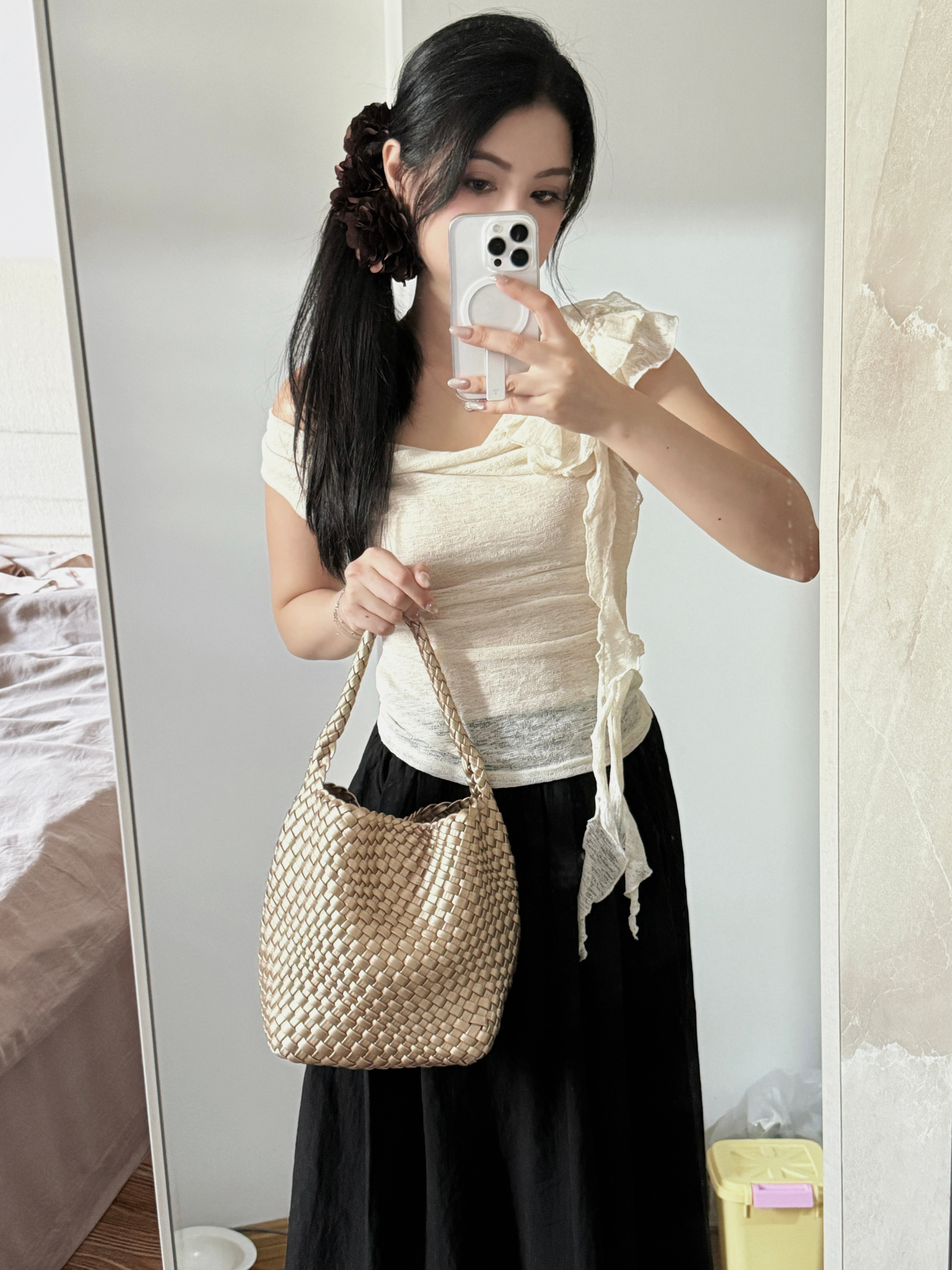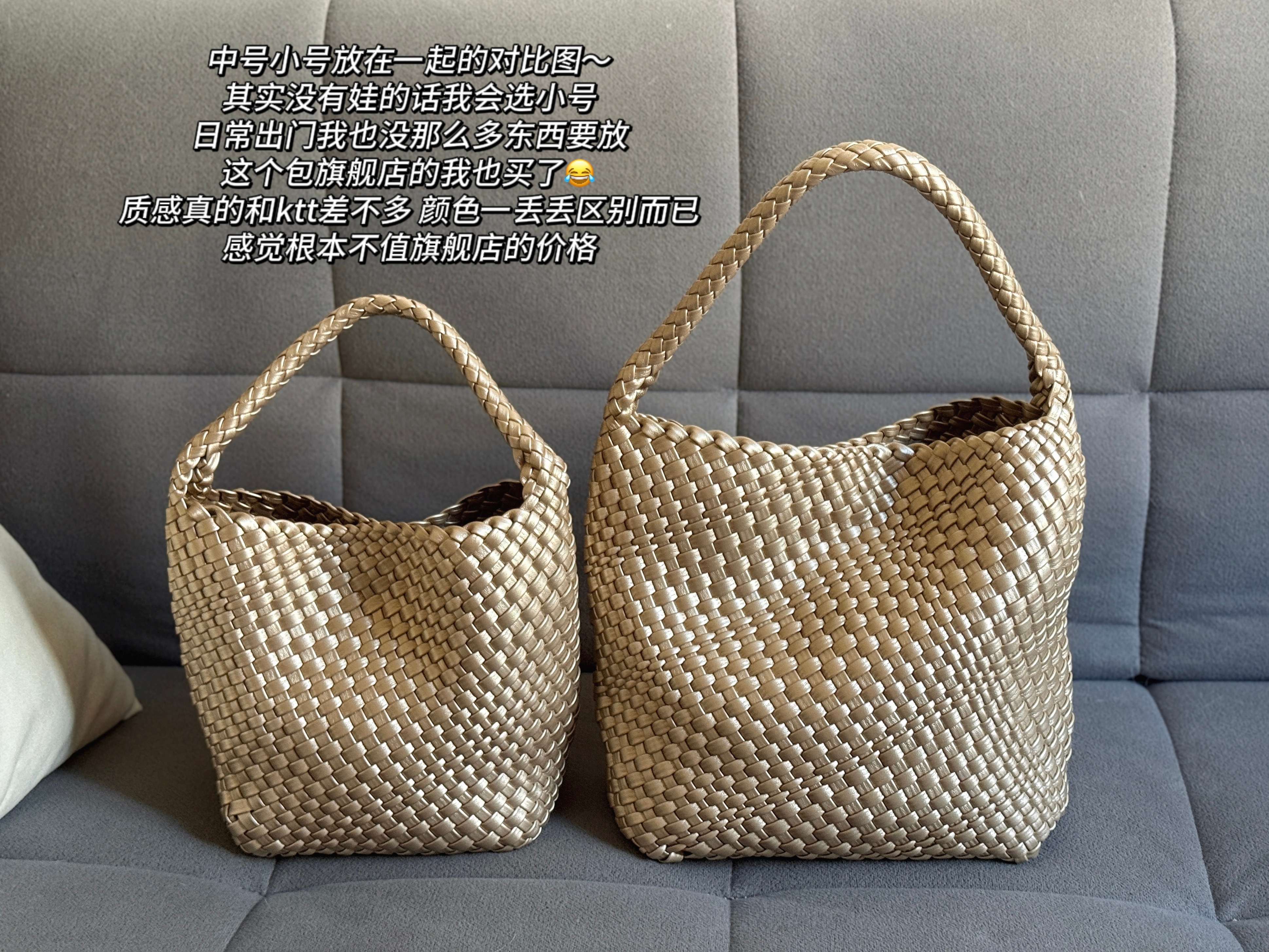 被最后两张图种🌿的编织包[嘻嘻]一开始选的小号 后来又觉得带娃出门不够大 ge