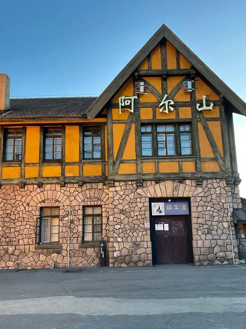3️⃣.阿尔山火车站 ,“中国最美火车站” 。黄墙红瓦,像童话里的建筑。