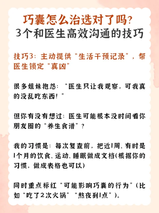 作为和医生打了无数次交道的巧囊过来人+营养师,我想说:巧囊调理的成败,70%取决于“你和医生的沟通效率”
