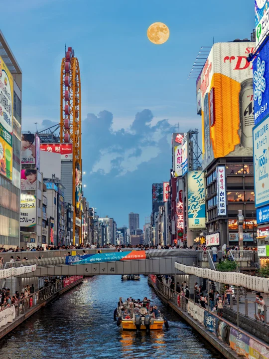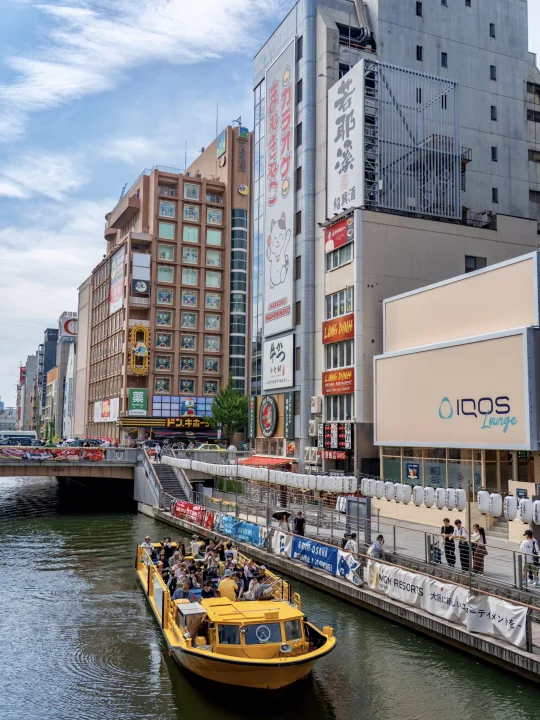 大阪标志性桥梁,游船驶过,仿佛瞬间穿越进动漫场景🛳️。