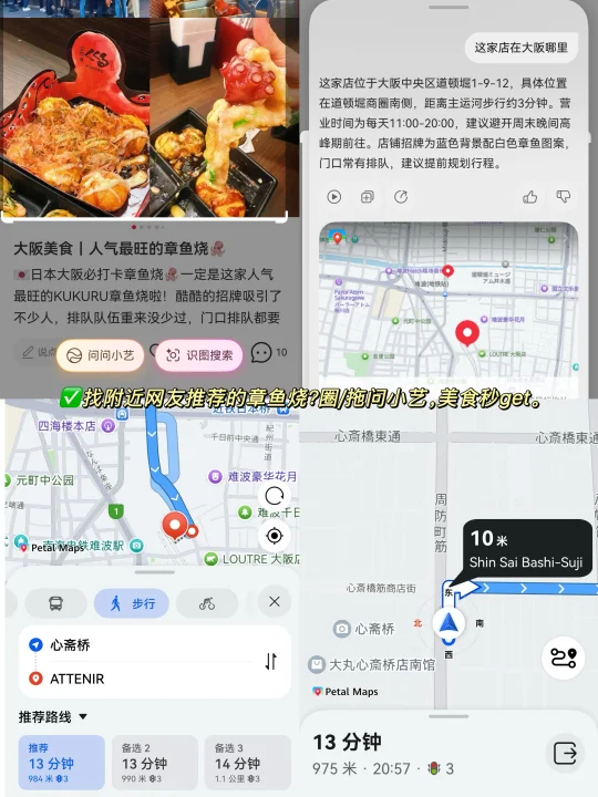 ✅想吃附近网友推荐的地道章鱼烧?一圈/一拖问问小艺“导航到图片中的地址”,美食秒get!