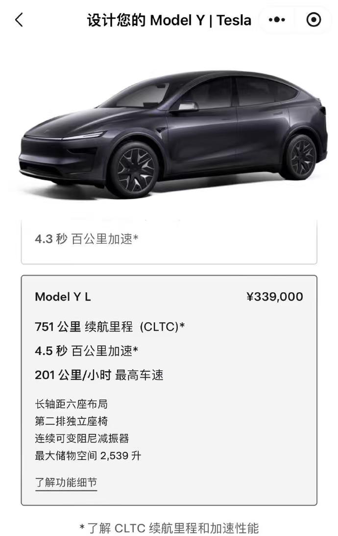 #Model Y L竞争力如何🌟前言 特斯拉这次又是“无发布会、零预热”直接上线,Model Y L售价33.9 万元。与其说价格扎眼,不如说“空间”才是最大悬念:车身 4979 mm,仅比蔚来ES7短一丢丢,却硬塞 3 排 6 座——第三排究竟能不能坐成年人?先打个问号。 🌟优点速览 1️⃣ 三电硬核:电池仍由宁德时代/LG/松下三家“神仙”供货,官方承诺 8 年/16 万公里衰减≤20%;电控沿用 ST 意法半导体方案,百公里电耗最低 12 kWh。 2️⃣ 安全拉满:一体式后底板+超高强度钢,翻滚几圈还能“人走车留”的名场面网上一搜一大把。 3️⃣ 操控依旧:前双叉臂+后五连杆,紧急并线稳得一批;虽然悬架偏硬,但方向盘指哪打哪。 4️⃣ 价格真香:欧洲同款能买 X5 入门版,国内 33.9 万就能拿下“特斯拉全家桶”,性价比肉眼可见。 🌟槽点合集 1️⃣ 内饰“毛坯”:仪表取消、换挡拨杆失踪,同级国产早已卷到冰箱彩电大沙发,特斯拉依旧性冷淡。 2️⃣ 第三排“儿童专座”:腿部/头部空间捉急,成年人短途应急可以,长途直接劝退。 3️⃣ 配置落差:没有空气悬架、没有零重力、没有后排屏幕,家庭用户想要的“移动起居室”体验,隔壁理想L8、乐道L90 直接给满。 🌟一句话总结 Model Y L 把“好开、省电、安全”卷到极致,却把“舒适、空间、豪华”让给了对手。如果你是小两口+偶尔父母出行,它依旧真香;如果你追求 6 座全家桶,理想/乐道或许更懂生活。33.9 万,你会为特斯拉的“极致效率”买单,还是转头拥抱国产“移动大平层”?