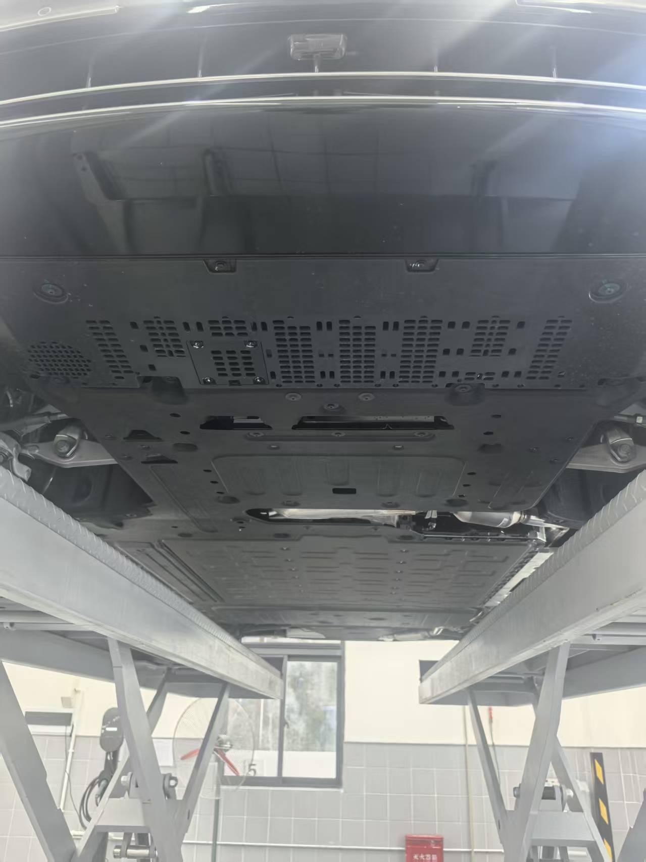 我的小九升起来底盘工工整整 白花花的铝合金悬架 ,前双叉臂后多连杆 CDC可变阻尼加双腔空气悬架 软硬可调,高低可调 这底盘是真舒服