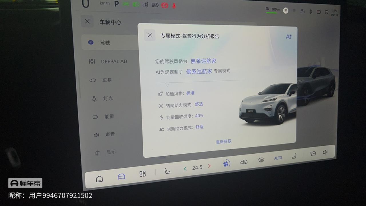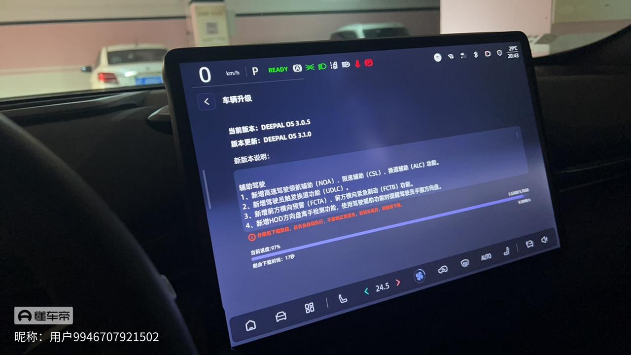坐标广东佛山,车型:510max,3月18提车,行驶里程:13641公里 两天前升级了3.1版本,粗略体验了一下说说暂时的优缺点哈。 优点: 1、DEEP AD PRO:更新后最大的体感就是支持拨杆变道或自行变道,且开启智驾后不会像以前一样频繁出现急加速急刹车,相对平稳很多。(目测这5算力的芯片能识别的直线范围是在70米~80米左右) 2、遥控泊车系统:新增了远程泊车系统,且不说智能与否但我个人是觉得好用。起码在无法到现场有需要挪车的场景可以手机远程控制挪车并识别车位进行自动泊入。(已在公司划线停车场试过,识别率挺高) 3、行车记录拓展:原车只有8G内存哨兵模式下只能循环30~40分钟现在插了128G后完全不用时不时就手动删除视频释放内存!!! 4、DeepSeek终于可以手动关闭了,不会在执行语音控制时误触发。 5、驾驶模式新增Ai专属,会根据你最近的驾驶习惯来设定加速模式及动能回收比例。 缺点: 1、自动泊车时要注意立体车位和有半空的位置,泊车系统无法识别容易剐蹭。家里车位为立体式,昨晚试了差点刮到隔壁的立体位。当然就那点算力咱不能要求太高。 2、app控制反应依旧延迟挺大,不知是不是我苹果手机的问题。 3、手动点开单冰模式后开车走了一段路停好车依旧会自动开启哨兵模式,更新前并不会每次停车后自动开启,具体原因不知,待观察。 4、更新后主驾座椅通风风量变得很小甚至只能说是微风,不知是否与更新系统有关,待下次保养后去4S检测。