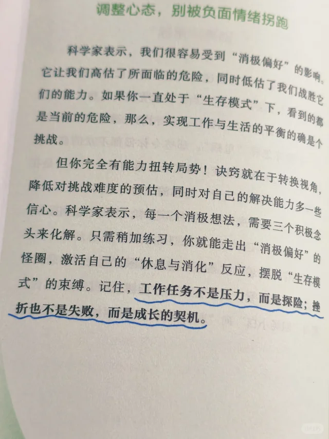 在我看来,这本书最珍贵的,是它传递的"可持续抗压"理念。当我们学会把压力转化为成长的养分,把工位变成修行的道场,职场便不再是消耗生命的战场,而是淬炼心智的熔炉。"人生不是轨道,而是旷野。"愿我们都能在职场的风雨中,种出属于自己的玫瑰。