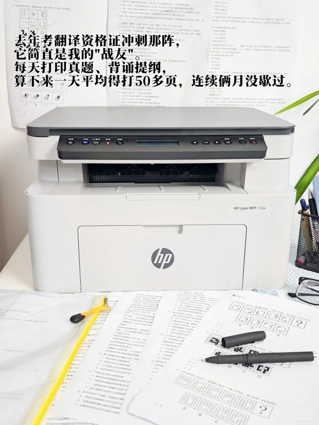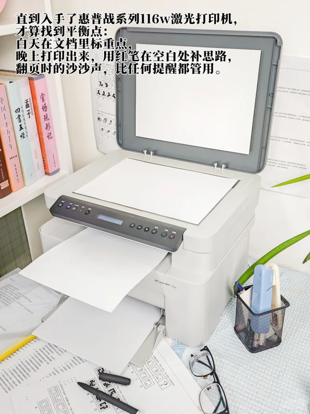 直到入手了惠普战系列116w激光打印机,才算找到平衡点:白天在文档里标重点,晚上打印出来,用红笔在空白处补思路,翻页时的沙沙声,比任何提醒都管用。