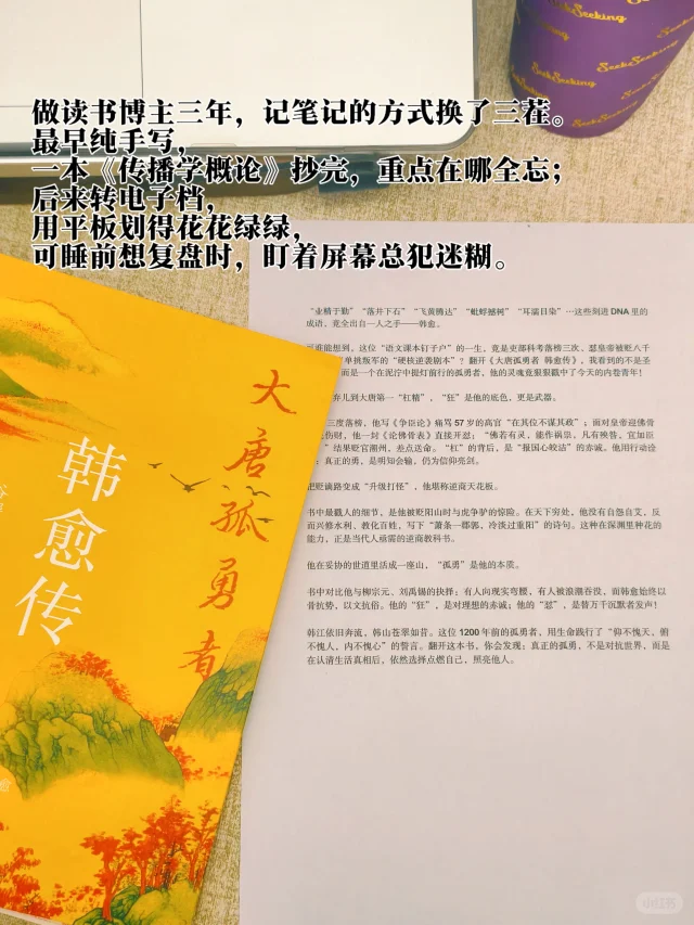 做读书博主三年,记笔记的方式换了三茬。最早纯手写,一本书抄完,重点在哪全忘;后来转电子档,用平板划得花花绿绿,可想要复盘时,盯着屏幕总犯迷糊。